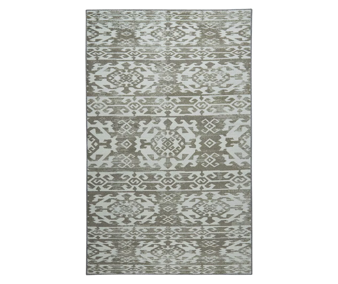- Striated geometric pattern in a neutral gray and white palette for a modern boho look