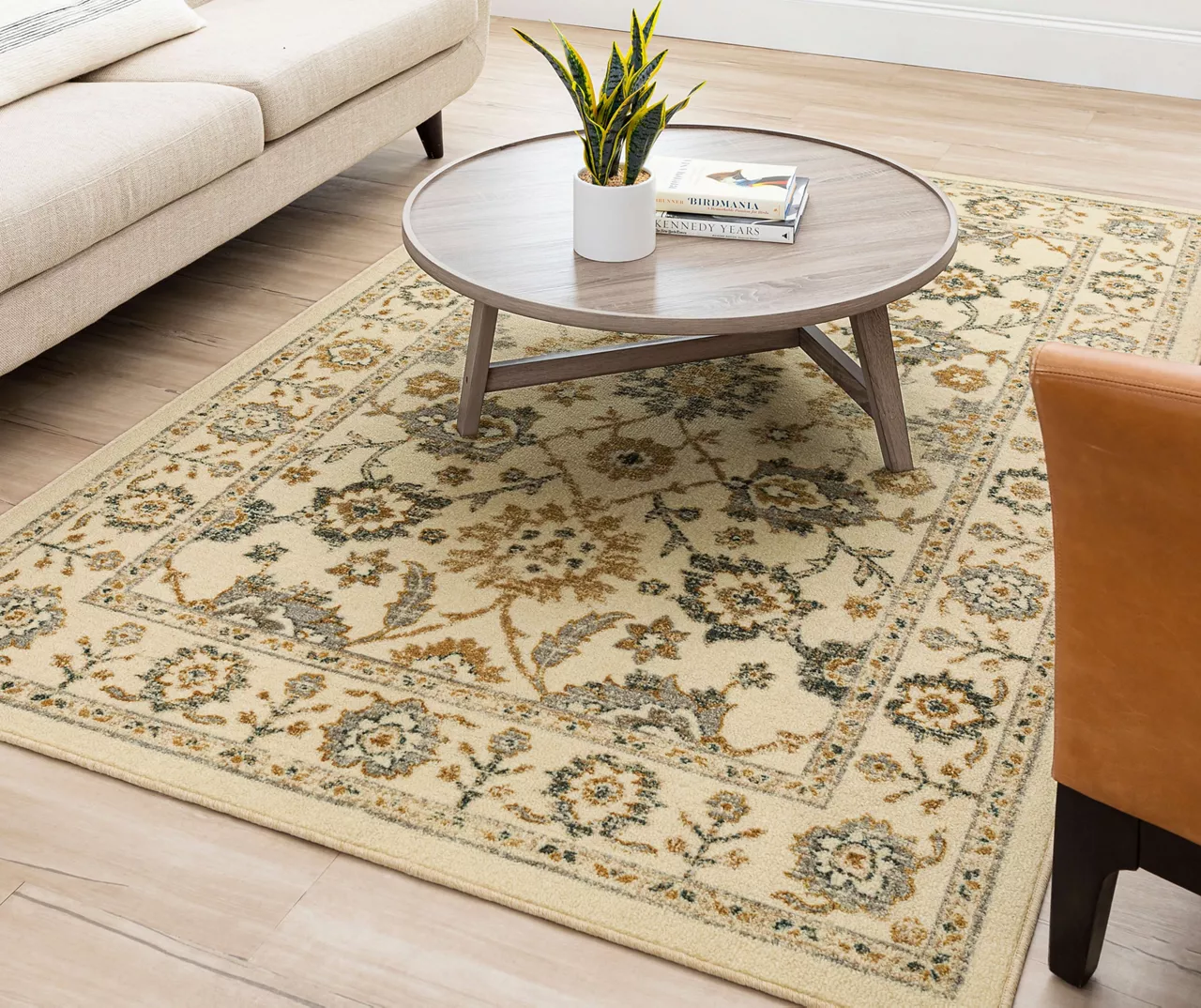 - Ornamental floral design in a neutral palette for a traditional look