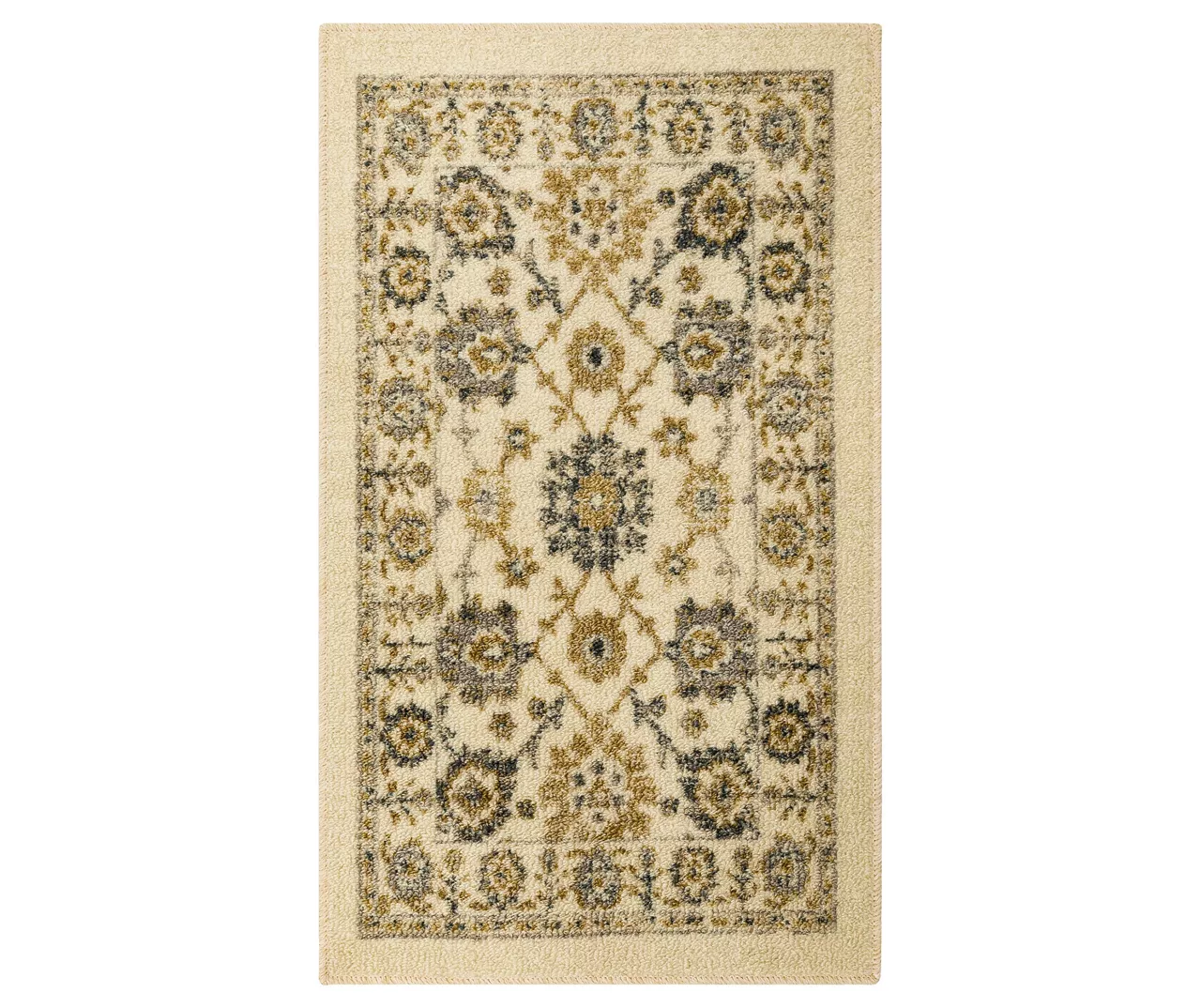 The Mohawk Home Banton area rug features an ornamental motif in a versatile color palette that is sure to perfectly accent any room. The low pile is created with Mohawk’s premium wear-dated nylon fiber for a soft touch and dependable durability. This rug is sure to make an elegant addition to a bedroom or other living space and the non-skid latex backing helps to keep things in place.
