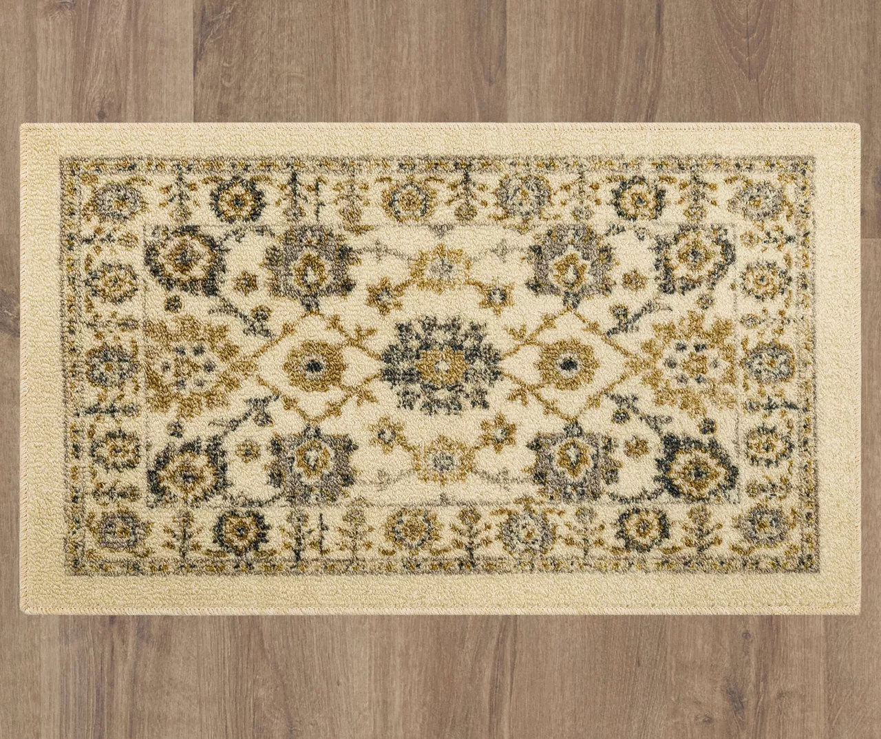 The Mohawk Home Banton area rug features an ornamental motif in a versatile color palette that is sure to perfectly accent any room. The low pile is created with Mohawk’s premium wear-dated nylon fiber for a soft touch and dependable durability. This rug is sure to make an elegant addition to a bedroom or other living space and the non-skid latex backing helps to keep things in place.