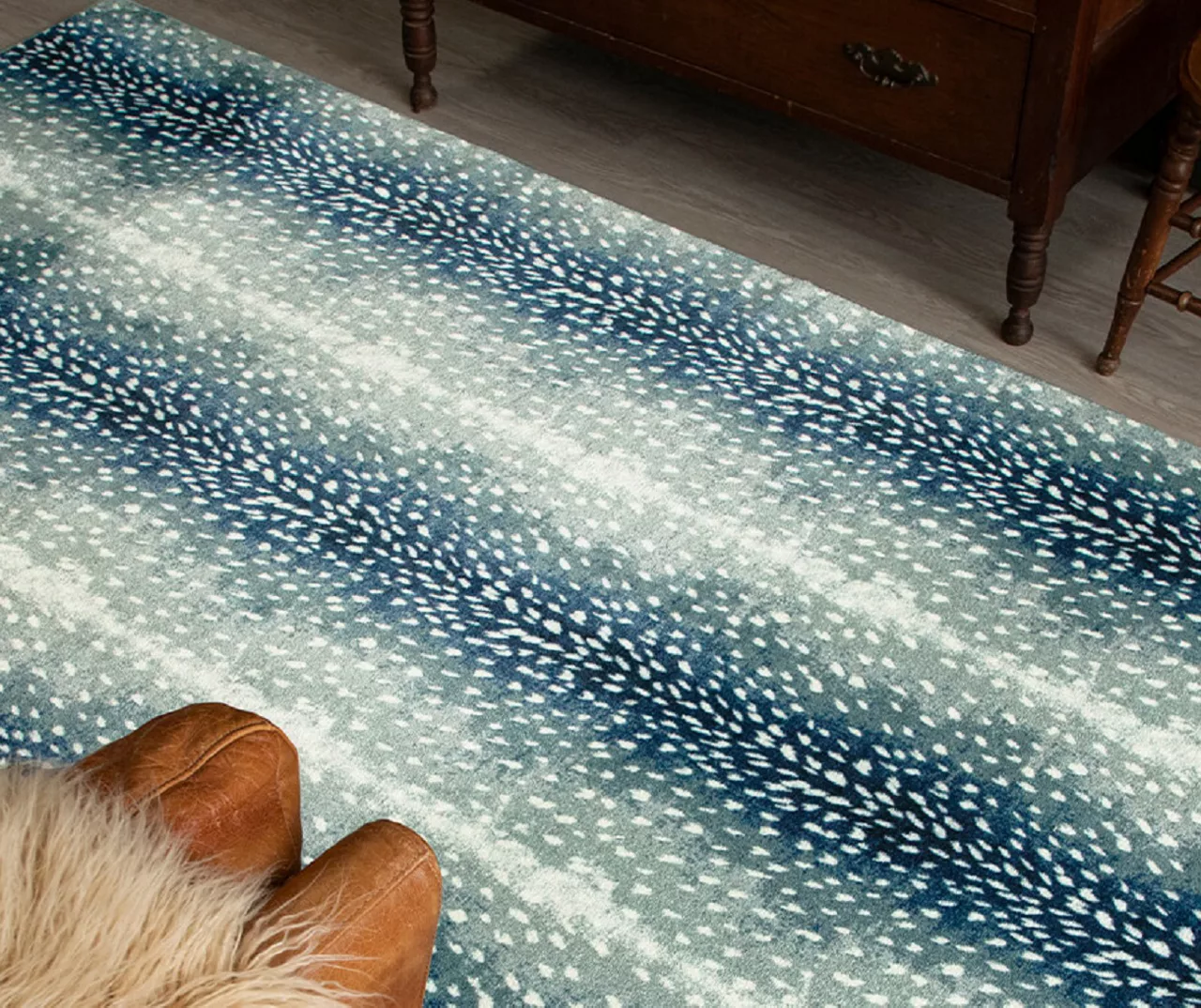 Trendy and wild design come to life in the animal print motif of Mohawk Home’s antelope print area rug. The animal skin pattern is fabricated in shades of indigo, teal and cream to create an ideal statement piece to add to your space. Thoughtfully crafted in the U.S.A. utilizing Mohawk Home’s exclusive precision dye-injected printer, this rug is designed on a plush EverStrand™ tufted base made from premium recycled polyester. A non-skid latex backing helps to keep things in place and the low pile is durably designed to easily work with doorways or furniture while withstanding everyday use.