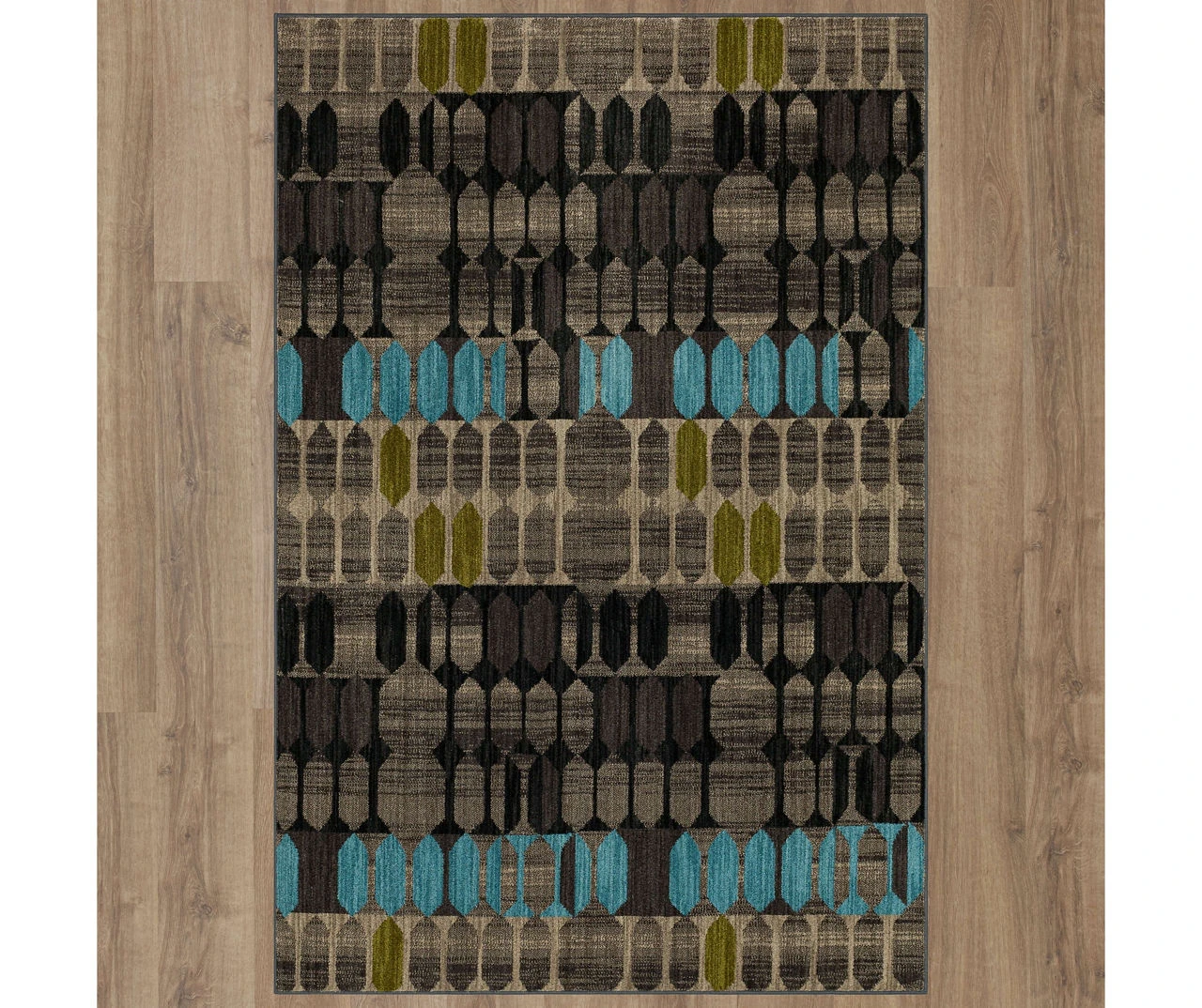 A contemporary geometric design with clean pops of bright color, Mohawk’s Carlton area rug will refresh any room. The bold palette features gunmetal gray and dark beige striations throughout the base with accents of celery green, onyx black and lagoon blue. Designed with Mohawk’s exclusive EverStrand™ recycled polyester yarn, the styles of the Metropolitan Collection offer a sumptuous softness, superior stain resistance and dependable durability.