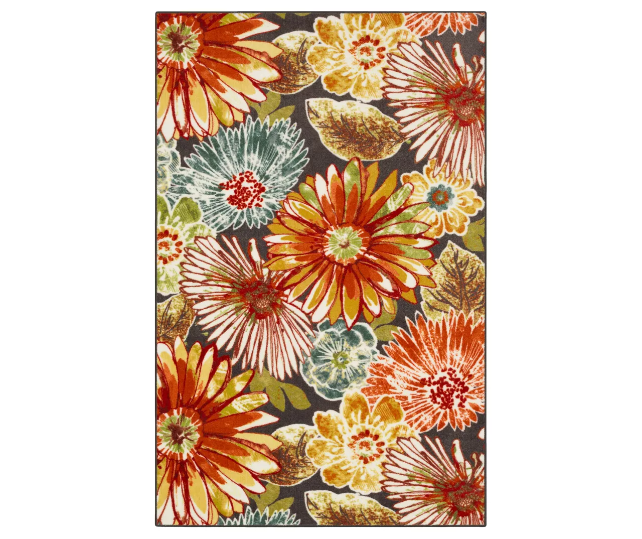 Fresh and vivid colors give the oversized floral pattern of this lovely area rug from Mohawk a look that is on-trend as well as fun to create a dramatic visual statement for your floor. Printed and made in the U.S.A., this rug is extremely durable and vibrant and offers a spread of soft comfort underfoot.