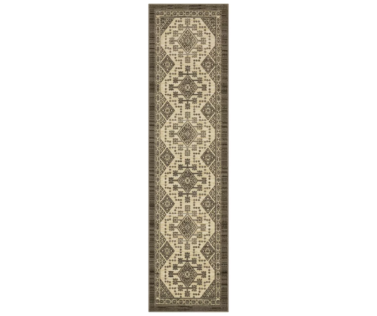 The Mohawk Home Cirius area rug features an ornamental geometric motif in a versatile color palette that is sure to perfectly accent any room. The low pile is created with Mohawk’s premium wear-dated nylon fiber for a soft touch and dependable durability. This rug is sure to make an elegant addition to a bedroom or other living space and the non-skid latex backing helps to keep things in place.