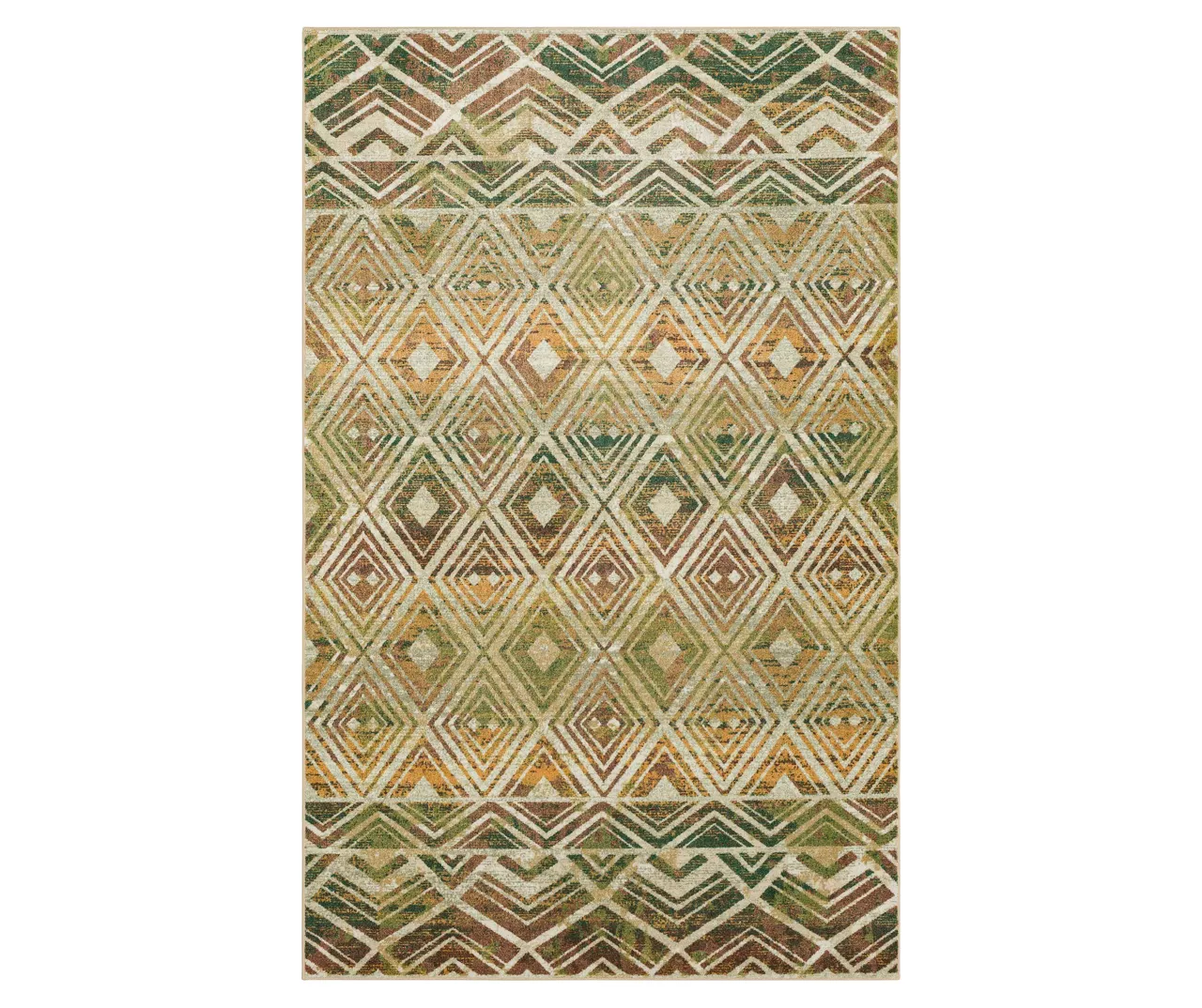 - Geometric design in shades of green, yellow, purple and beige for a modern boho look