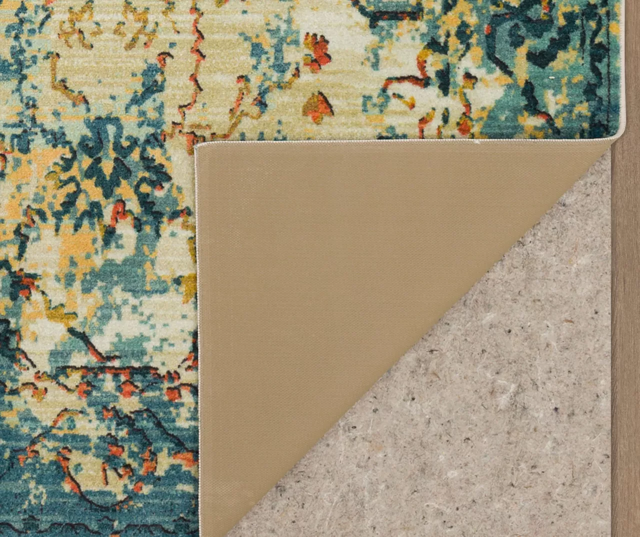 Richly distressed and created with color erosion techniques, the dimensional Essa area rug from Mohawk Home blends vintage Persian-inspired style with modern finishes in soft shades of light blue, tan, cream and gold. Original artwork is digitally printed over a plush canvas of Mohawk Home’s exclusive EverStrand™, a premium synthetic yarn created from post-consumer recycled plastic bottles. While EverStrand™ is renowned for its softness, this silky yarn also offers superior strength, stain resistance, illustrious fade-resistant color clarity and dependable durability ideal for high-traffic spaces with kids and pets.