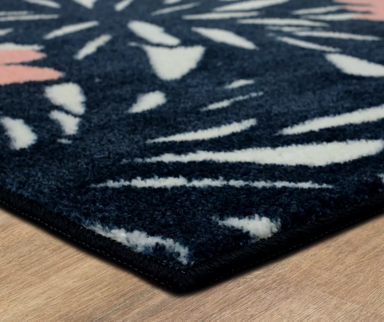 This beautiful area rug from Mohawk bursts with a sophisticated peach and white floral pattern against a deep navy background. Its soft texture is the perfect blend of lavishness and practicality, thanks to its Precision Dye-Injected EverStrand™ construction. Original artwork is digitally printed over a plush canvas of Mohawk Home’s exclusive EverStrand™, a premium synthetic yarn created from post-consumer recycled plastic bottles. While EverStrand™ is renowned for its softness, this silky yarn also offers superior strength, stain resistance, illustrious fade-resistant color clarity and dependable durability ideal for high-traffic spaces with kids and pets.