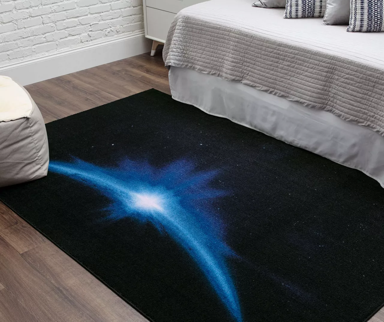 Transport yourself to a distant galaxy with Mohawk Home’s Galactic Quest area rug. This stellar design draws inspiration from the scintillating marvels of outer space and is sure to create a statement that is out of this world! Original artwork is digitally printed over a plush canvas of Mohawk Home’s exclusive EverStrand™, a premium synthetic yarn created from post-consumer recycled plastic bottles. While EverStrand™ is renowned for its softness, this silky yarn also offers superior strength, stain resistance, illustrious fade-resistant color clarity and dependable durability ideal for high-traffic spaces with kids and pets.
