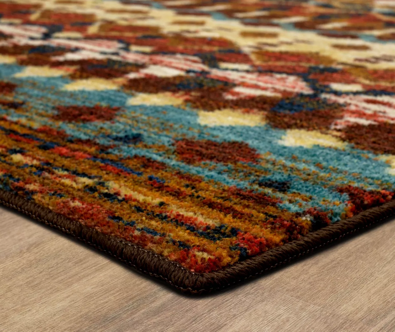 - Geometric and stripe pattern in earthen hues for a boho look