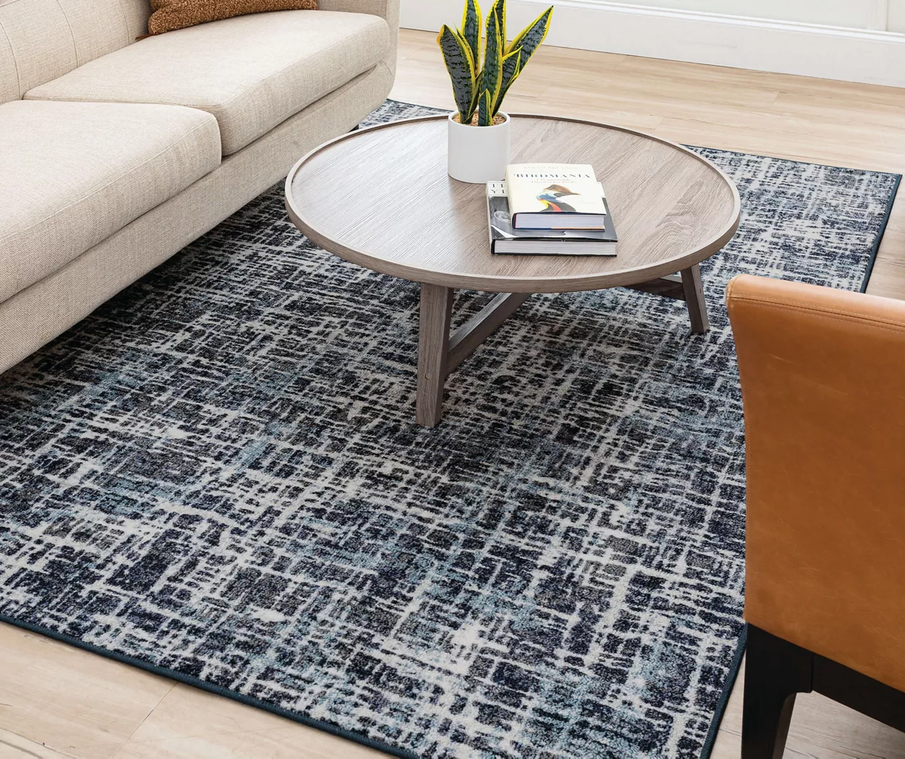The Mohawk Home Gunnison area rug features an abstract crosshatch design motif in a versatile navy and white palette that is sure to perfectly accent any room. The low pile is created with Mohawk’s premium wear-dated nylon fiber for a soft touch and dependable durability. This rug is sure to make an elegant addition to a bedroom or other living space and the non-skid latex backing helps to keep things in place.