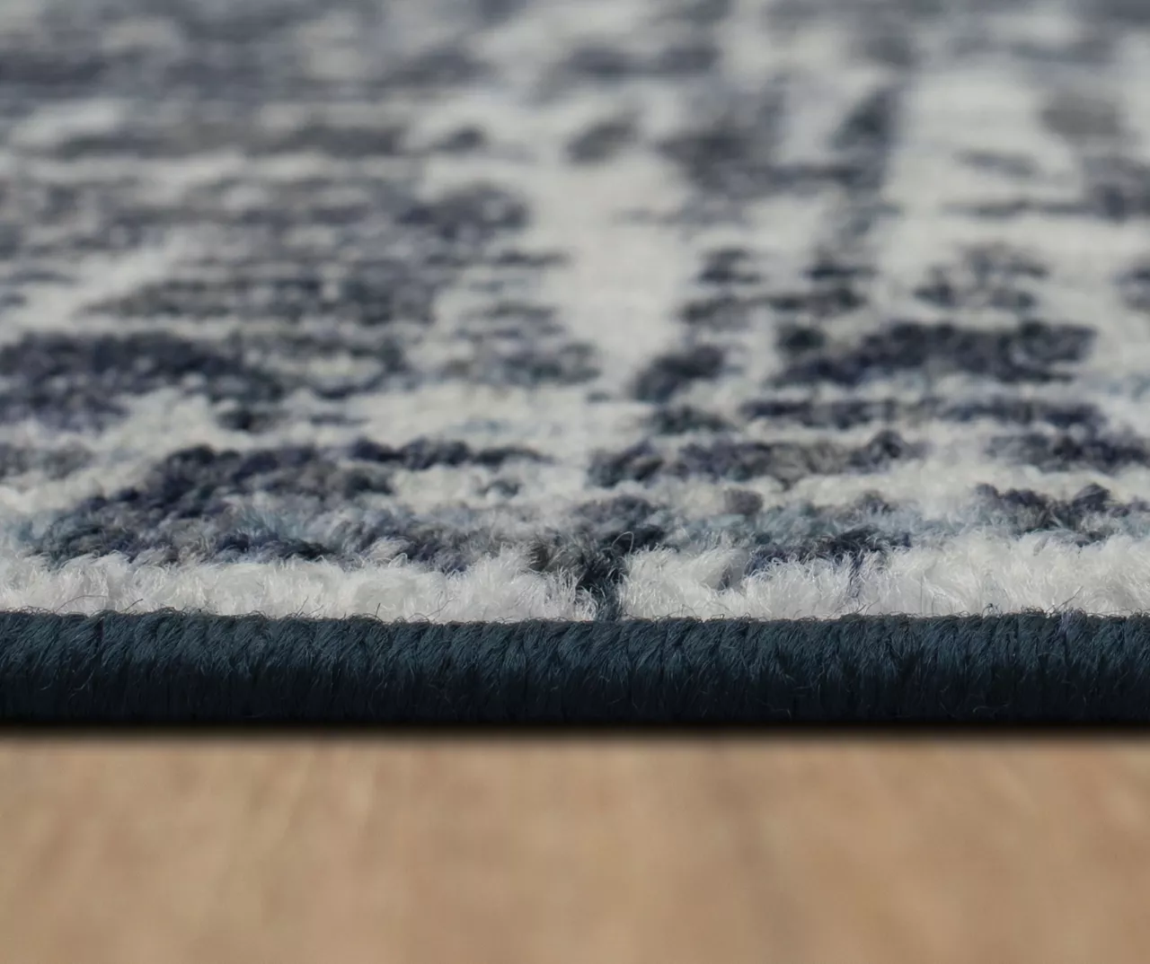 The Mohawk Home Gunnison area rug features an abstract crosshatch design motif in a versatile navy and white palette that is sure to perfectly accent any room. The low pile is created with Mohawk’s premium wear-dated nylon fiber for a soft touch and dependable durability. This rug is sure to make an elegant addition to a bedroom or other living space and the non-skid latex backing helps to keep things in place.