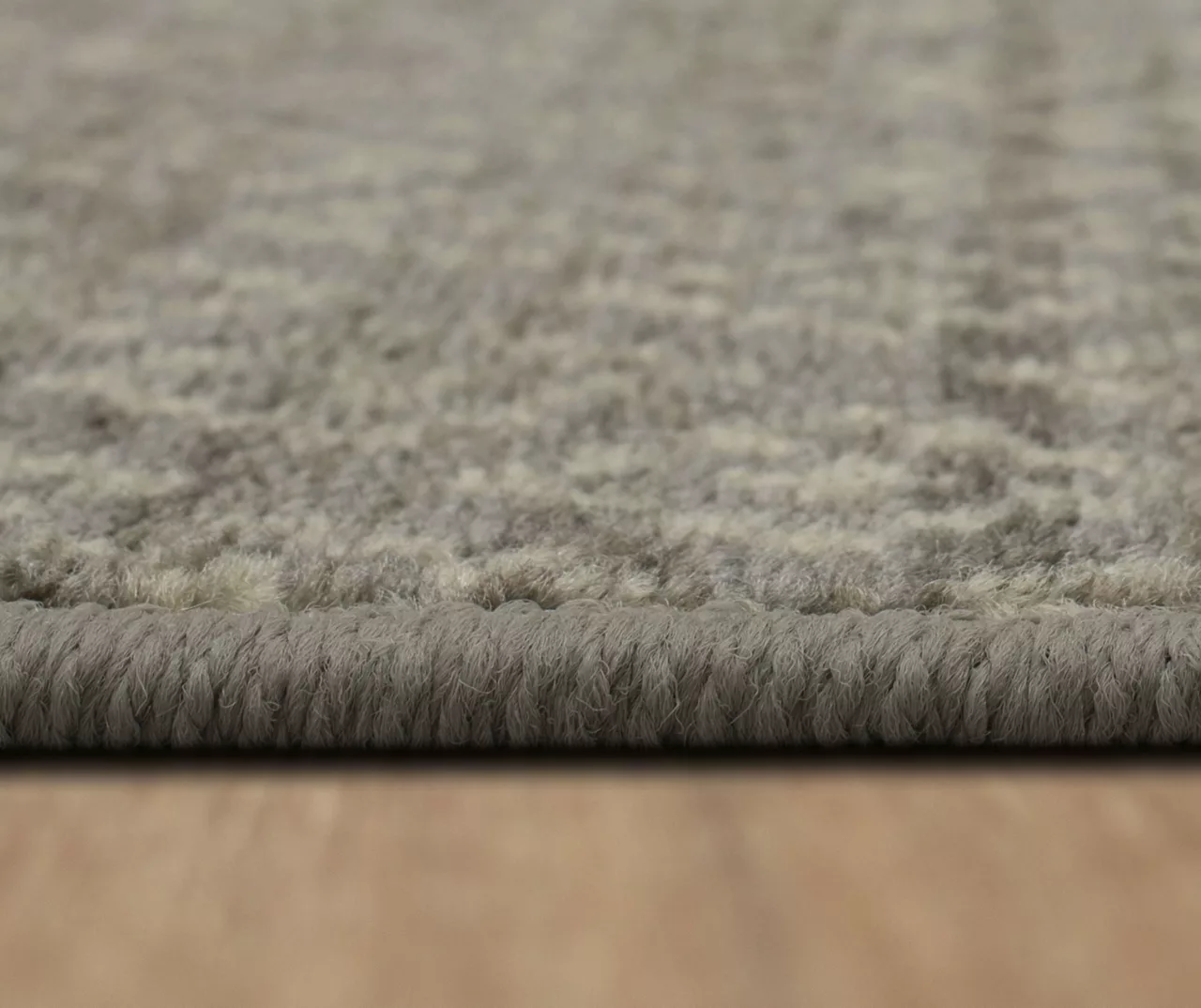- Intricate geometric pattern and bordering in a neutral palette for a modern boho look