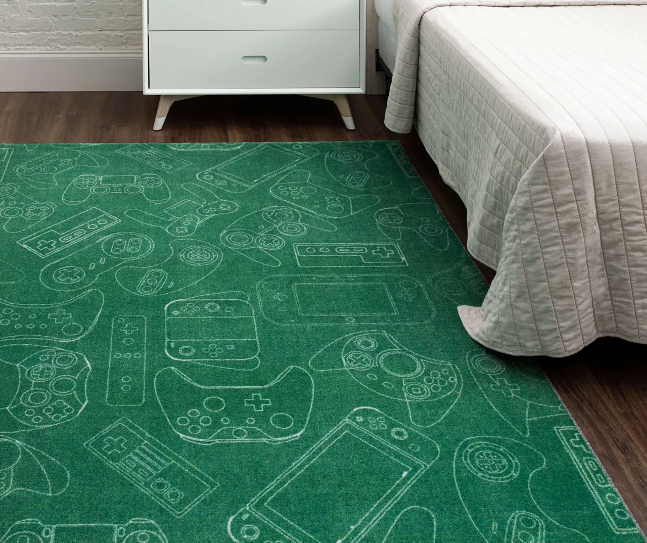 For the ultimate gamer, Mohawk Home’s In Control area rug is a win! A linework pattern features various console controllers, making this rug a great addition to any living room or gaming space. Thoughtfully crafted in the U.S.A. utilizing Mohawk Home’s exclusive precision dye-injected printer, this rug is designed on a plush EverStrand™ tufted base made from premium recycled polyester. A non-skid latex backing helps to keep things in place, and the low pile is durably designed to easily work with doorways or furniture while withstanding everyday use.