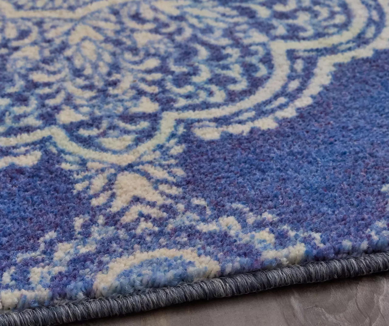 Delicate lace-inspired details dance inside the floral-shaped medallions of Mohawk’s contemporary Isabella area rug, showcased in a medium blue and white. Thoughtfully crafted in the U.S.A. utilizing Mohawk Home’s exclusive precision dye-injected printer, this rug is designed on a plush EverStrand™ tufted base made from premium recycled polyester. A non-skid latex backing helps to keep things in place, and the low pile is durably designed to easily work with doorways or furniture while withstanding everyday use.