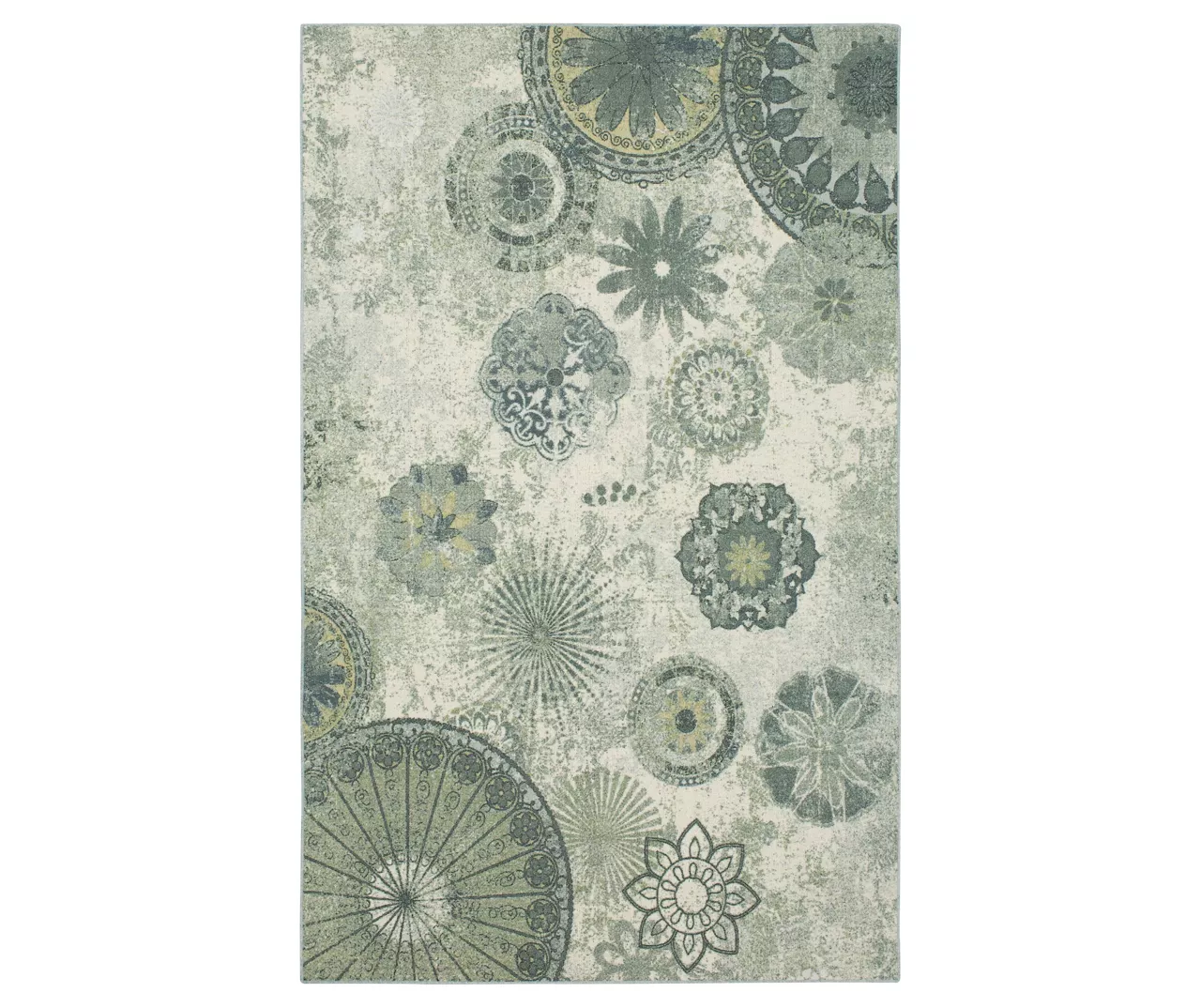 Artfully distressed and eclectic floral pinwheels in a neutral gray color palette add globally inspired style to your living space with the Mohawk Home Alexa runner rug. The versatile color palette and stylish elemental design bring a contemporary, yet old world feel to any area. This rug features bold color clarity and richly defined details with the dependable durability needed for busy households. The dense pile is created with a premium recycled polyester yarn that provides proven stain resistance while the latex backing helps to secure this rug in place.