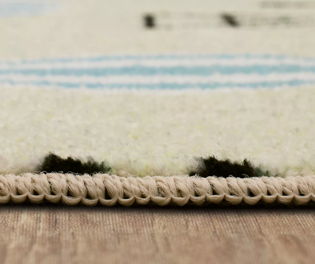 Maintain a careful equilibrium of intricacy and calm with this whimsical Balloon Ride area rug from Mohawk. Original artwork is digitally printed over a plush canvas of Mohawk Home’s exclusive EverStrand™, a premium synthetic yarn created from post-consumer recycled plastic bottles. While EverStrand™ is renowned for its softness, this silky yarn also offers superior strength, stain resistance, illustrious fade-resistant color clarity and dependable durability ideal for high-traffic spaces with kids and pets.
