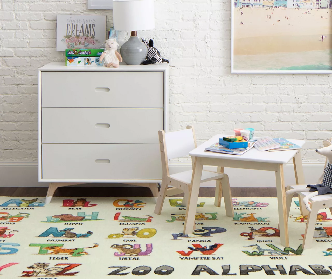 Encourage your little one to enjoy learning their letters with the colorful animal and letter design of Mohawk Home’s Alphabet Zoo area rug. Thoughtfully crafted in the U.S.A. utilizing Mohawk Home’s exclusive precision dye-injected printer, this rug is designed on a plush EverStrand™ tufted base made from premium recycled polyester. A non-skid latex backing helps to keep things in place, and the low pile is durably designed to easily work with doorways or furniture while withstanding everyday use.