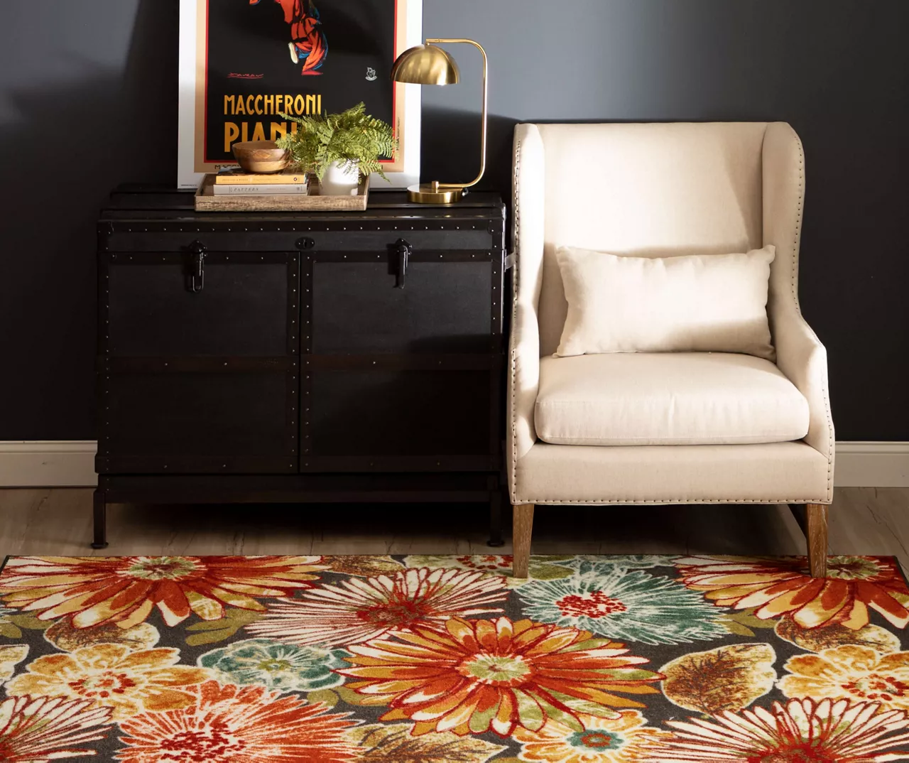 Fresh and vivid colors give the oversized floral pattern of this lovely area rug from Mohawk a look that is on-trend as well as fun to create a dramatic visual statement for your floor. Printed and made in the U.S.A., this rug is extremely durable and vibrant and offers a spread of soft comfort underfoot.