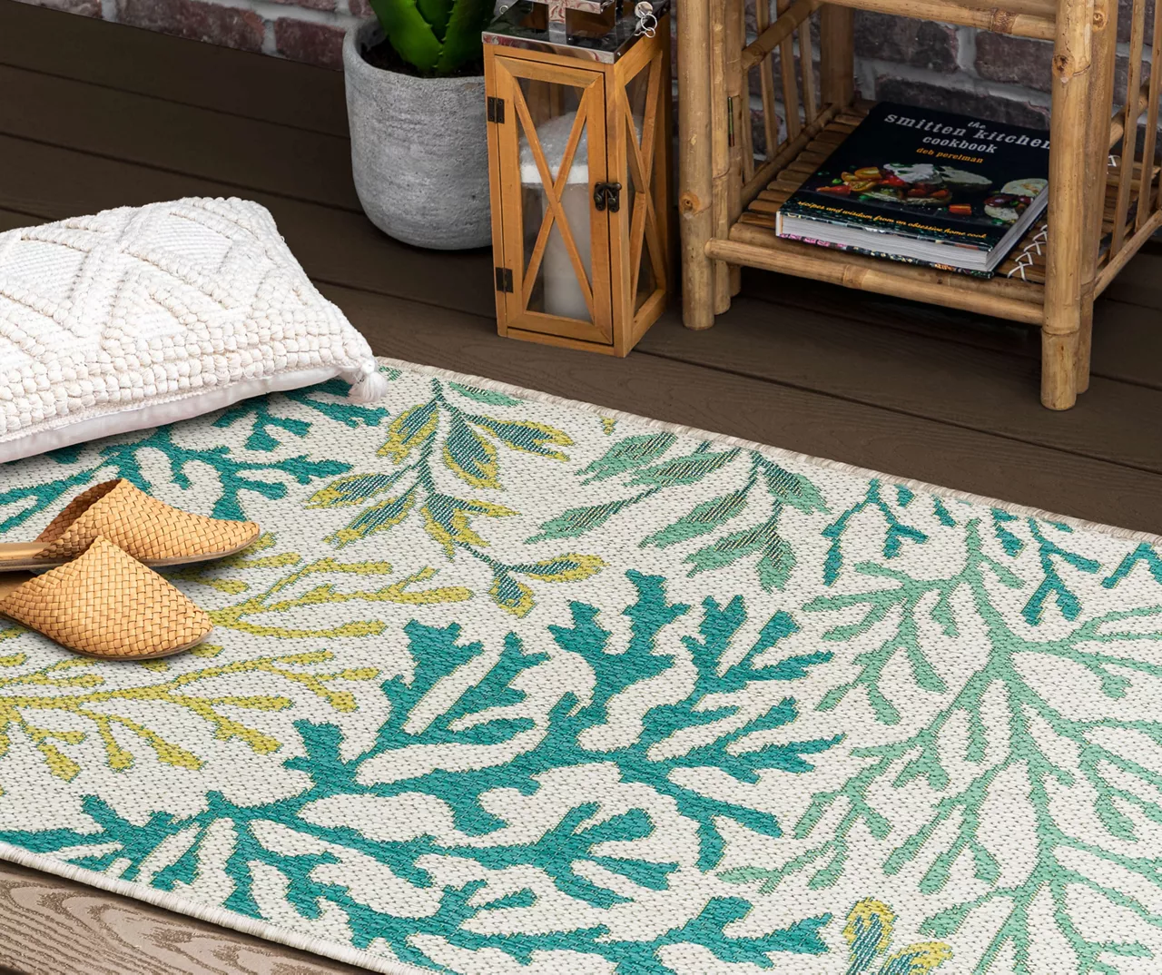 The Mohawk Home Coastal Cove area rug features a coastal design in bright palette of teal, green and white that adds a pop of color to your floors. Made with all-weather olefin polypropylene yarn, this flatwoven area rug offers a detailed design, soft feel and dependable durability that works in both indoor and outdoor spaces. The resilient surface fibers are resistant to stains, fading and moisture, making it a great choice for high-traffic areas.