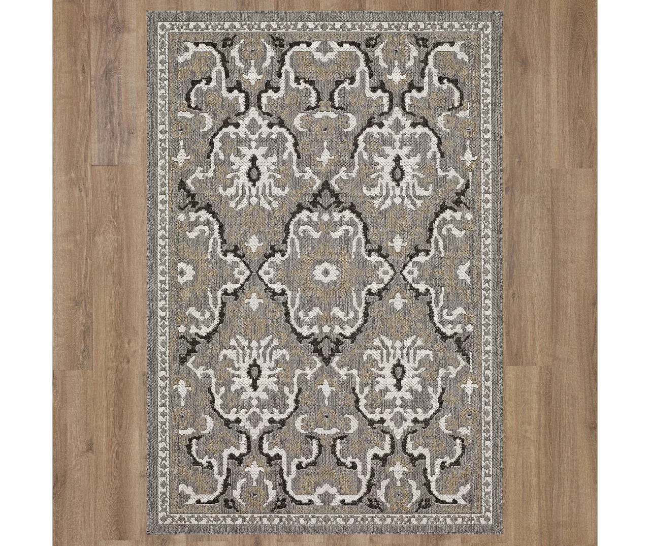 - An elegant ornamental design in a neutral palette for a traditional look