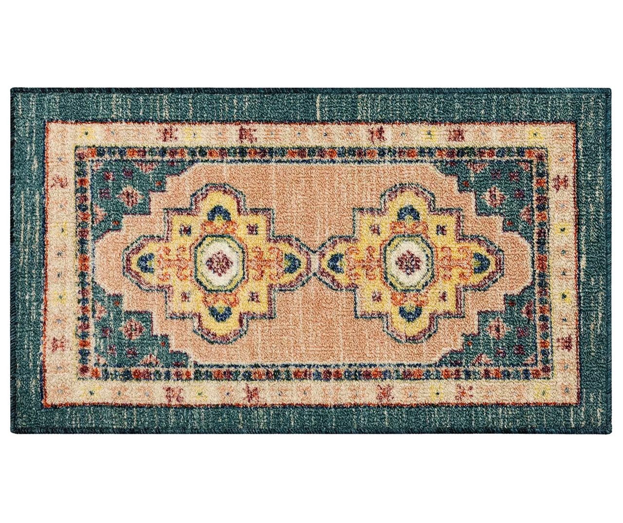 The Mohawk Home Coeus area rug features an ornamental design motif in a lovely green and beige palette that is sure to perfectly accent any room. The low pile is created with Mohawk’s premium wear-dated nylon fiber for a soft touch and dependable durability. This rug is sure to make an elegant addition to a bedroom or other living space and the non-skid latex backing helps to keep things in place.