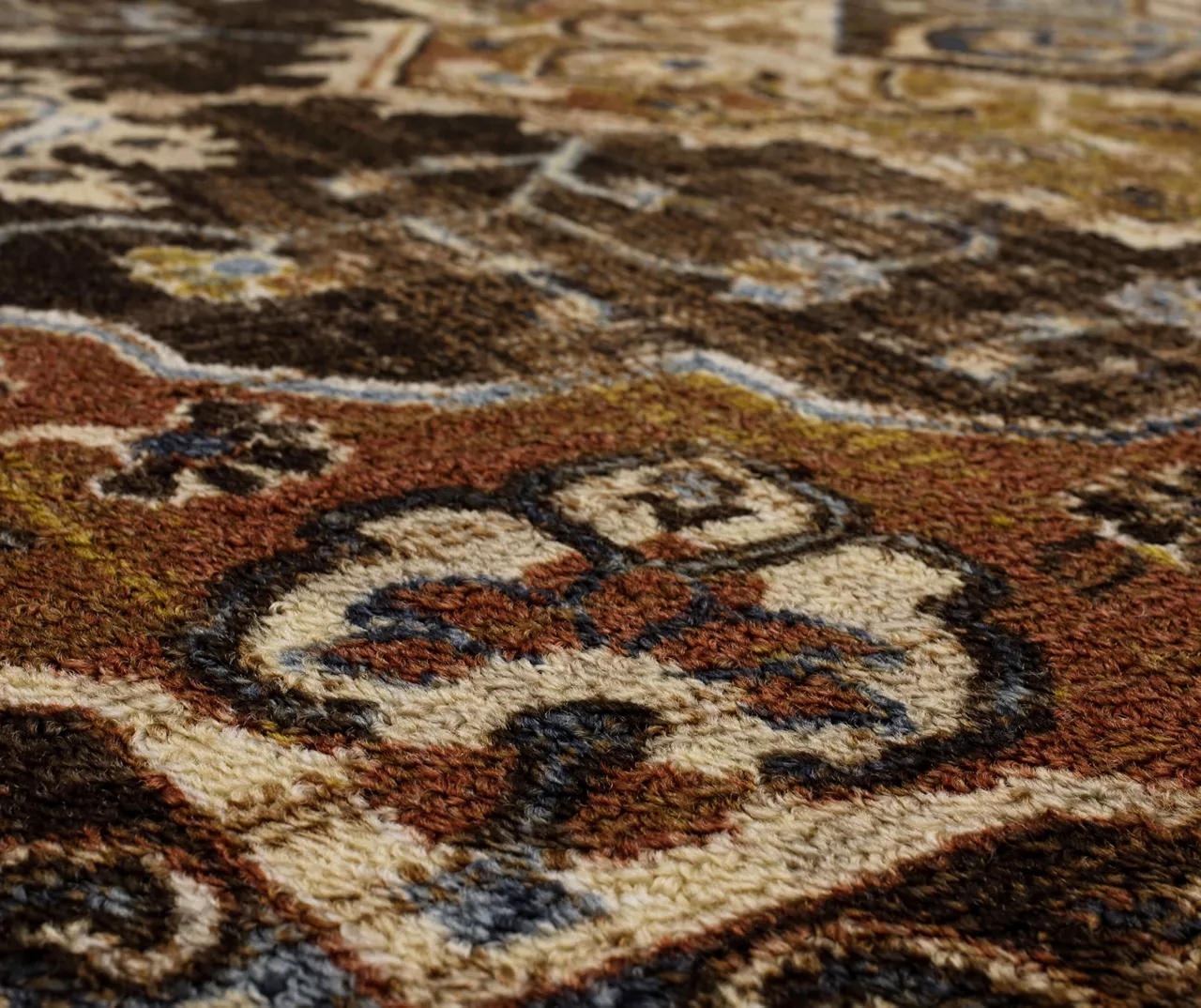 The Mohawk Home Eason area rug features an ornamental design motif in a versatile brown and navy color palette that is sure to perfectly accent any room. The low pile is created with Mohawk’s premium wear-dated nylon fiber for a soft touch and dependable durability. This rug is sure to make an elegant addition to a bedroom or other living space and the non-skid latex backing helps to keep things in place.