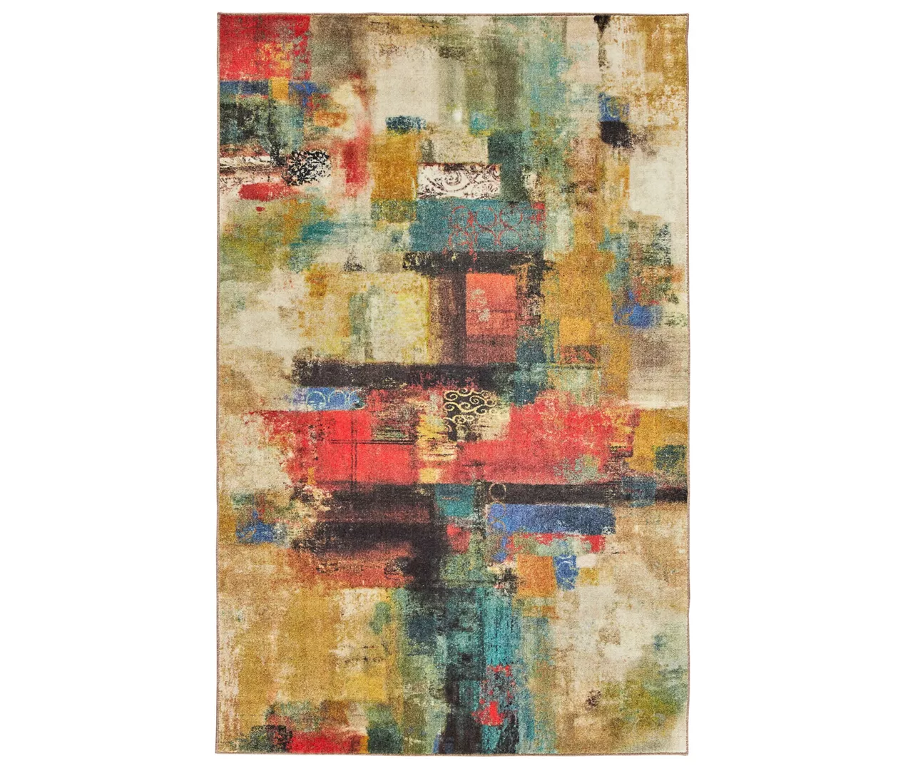 Overdyed, saturated shades of red, blue, black, green, white, gray, aqua and beige color blend and blur together in the modern painterly inspired style of Mohawk Home’s Graphic Canvas area rug. Thoughtfully crafted in the U.S.A. utilizing Mohawk Home’s exclusive precision dye-injected printer, this rug is designed on a plush EverStrand™ tufted base made from premium recycled polyester. A non-skid latex backing helps to keep things in place, and the low pile is durably designed to easily work with doorways or furniture while withstanding everyday use.