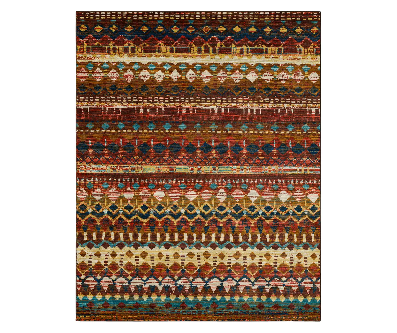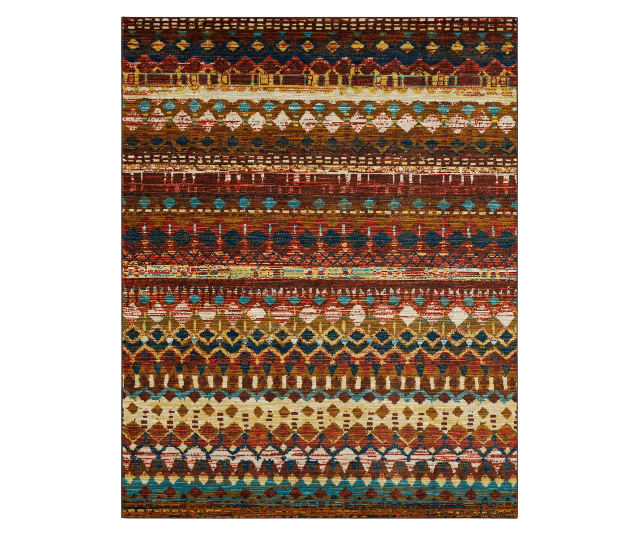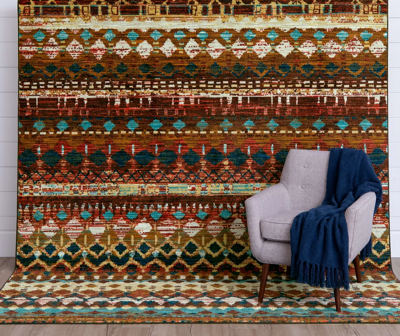 Mohawk Home’s Gulla Stripe area rug features an array of vibrant color within a reimagined Southwest blanket-inspired design. A striated background is overlaid with a bold geometric pattern to create a stunning modern design. Thoughtfully crafted in the U.S.A. utilizing Mohawk Home’s exclusive precision dye-injected printer, this rug is designed on a plush EverStrand™ tufted base made from premium recycled polyester. A non-skid latex backing helps to keep things in place, and the low pile is durably designed to easily work with doorways or furniture while withstanding everyday use.