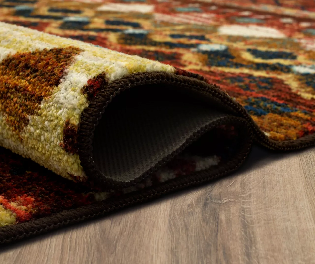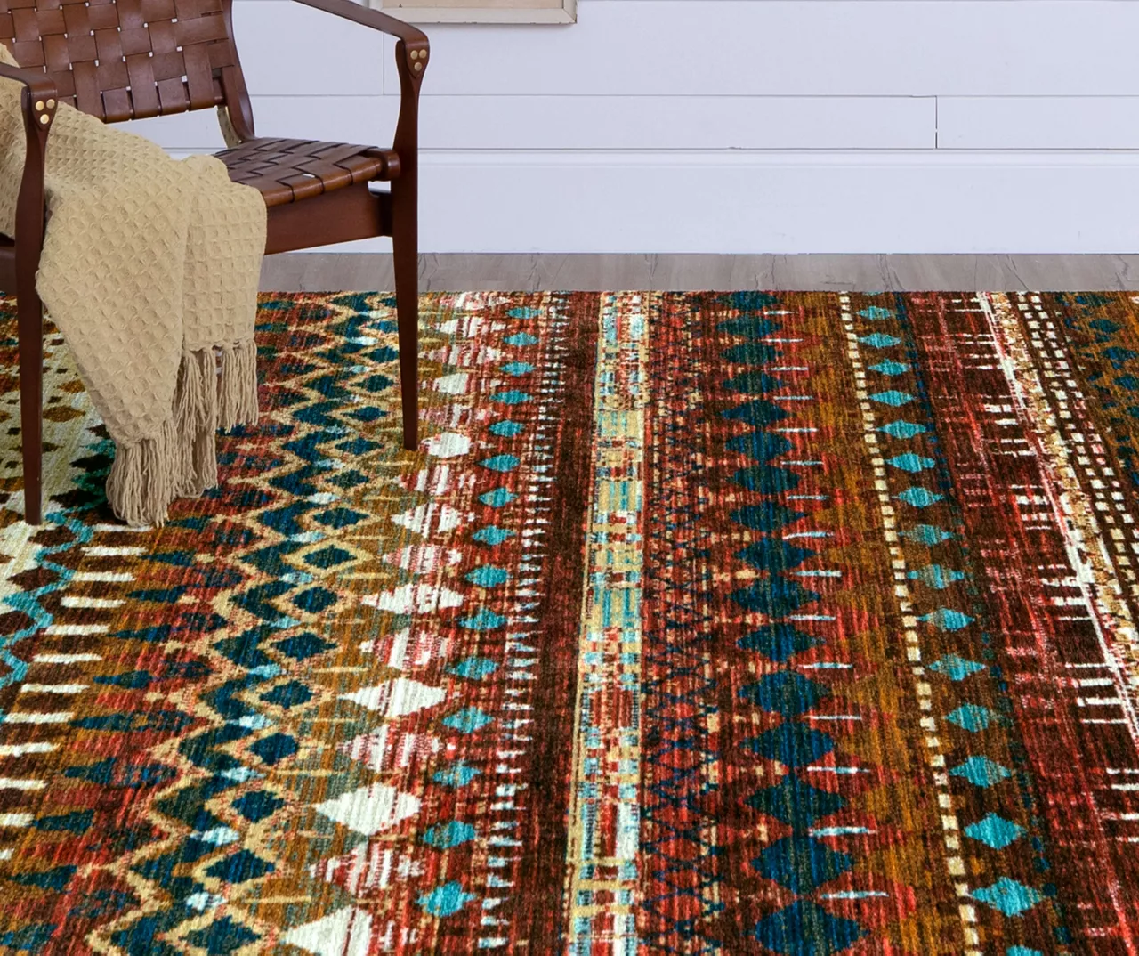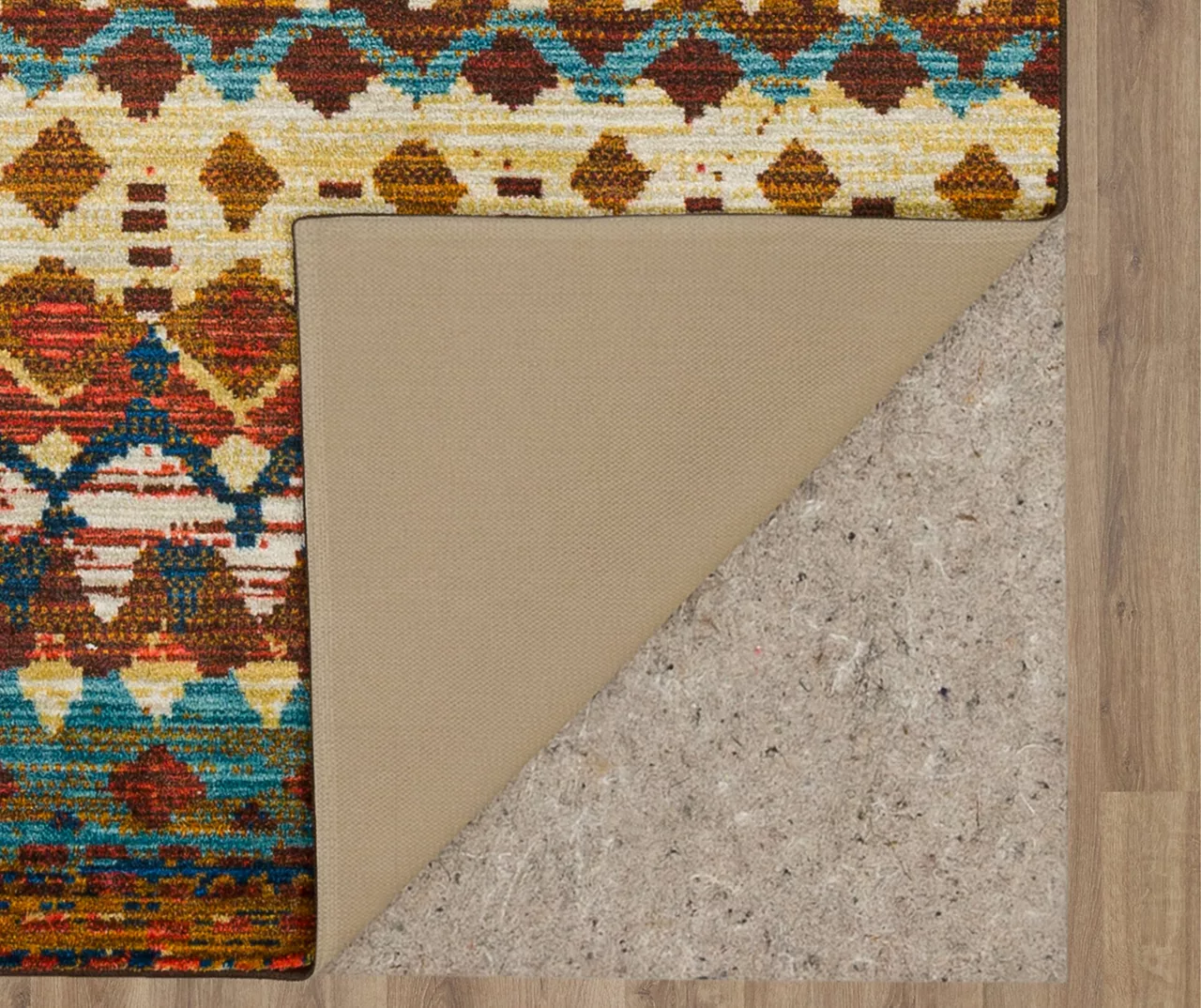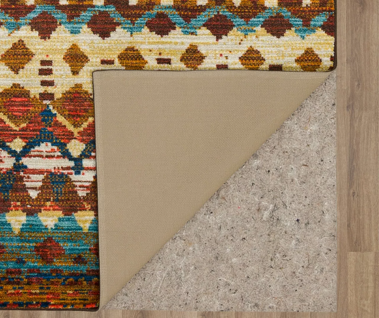 Mohawk Home’s Gulla Stripe area rug features an array of vibrant color within a reimagined Southwest blanket-inspired design. A striated background is overlaid with a bold geometric pattern to create a stunning modern design. Thoughtfully crafted in the U.S.A. utilizing Mohawk Home’s exclusive precision dye-injected printer, this rug is designed on a plush EverStrand™ tufted base made from premium recycled polyester. A non-skid latex backing helps to keep things in place, and the low pile is durably designed to easily work with doorways or furniture while withstanding everyday use.
