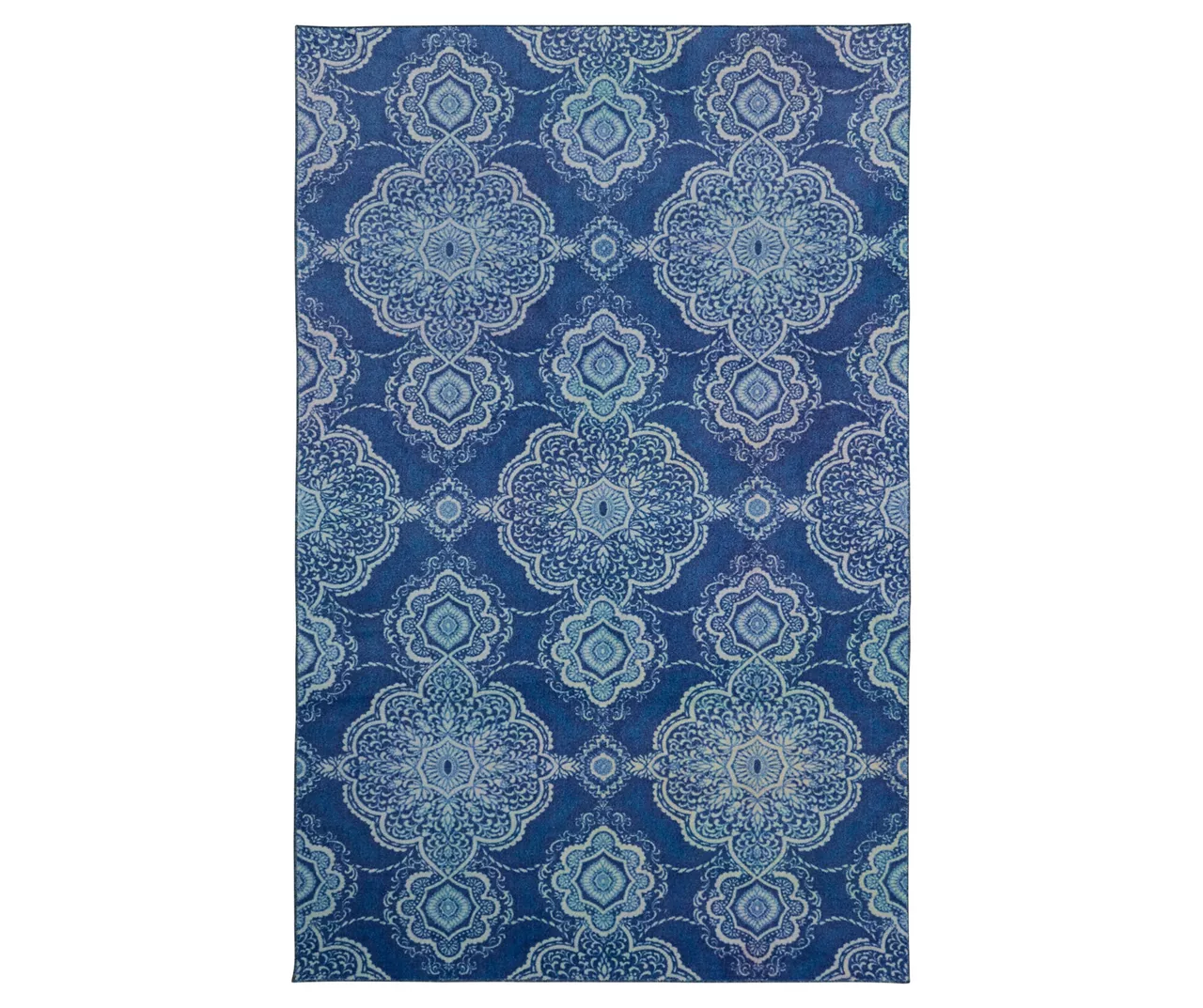 Delicate lace-inspired details dance inside the floral-shaped medallions of Mohawk’s contemporary Isabella area rug, showcased in a medium blue and white. Thoughtfully crafted in the U.S.A. utilizing Mohawk Home’s exclusive precision dye-injected printer, this rug is designed on a plush EverStrand™ tufted base made from premium recycled polyester. A non-skid latex backing helps to keep things in place, and the low pile is durably designed to easily work with doorways or furniture while withstanding everyday use.