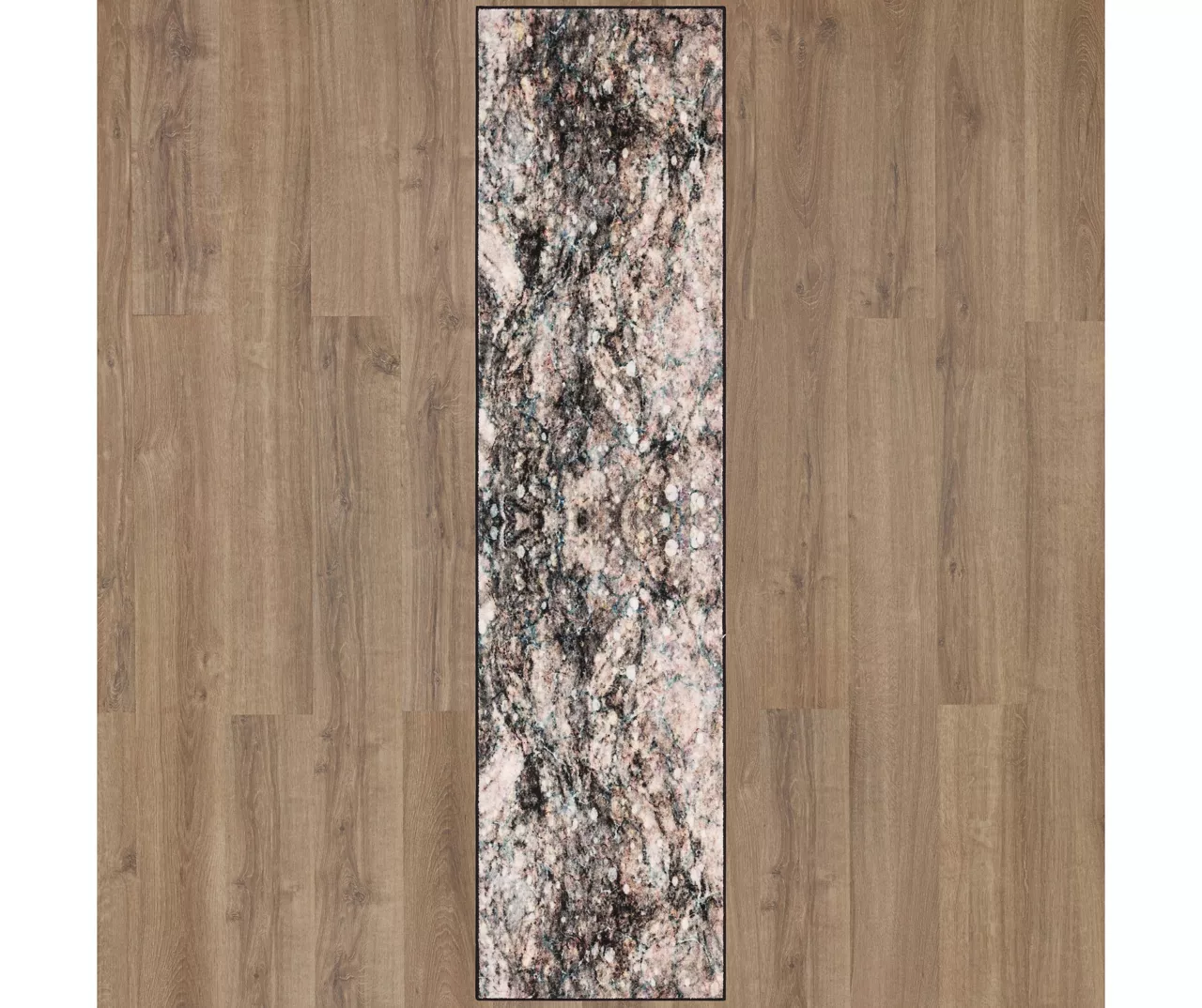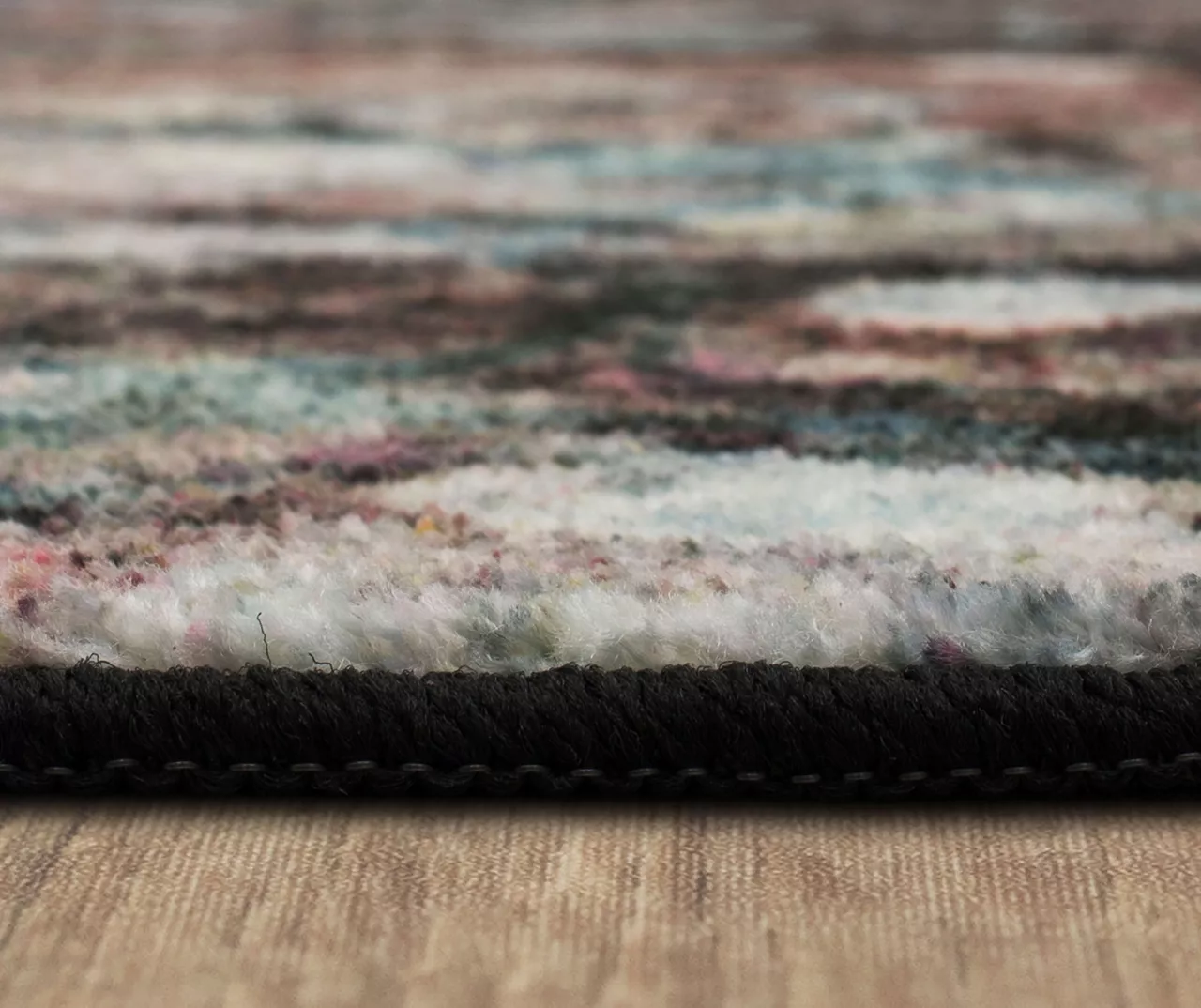 - Abstract layered marble-inspired design in blended shades of charcoal, brown, purple, blue and white for a modern look