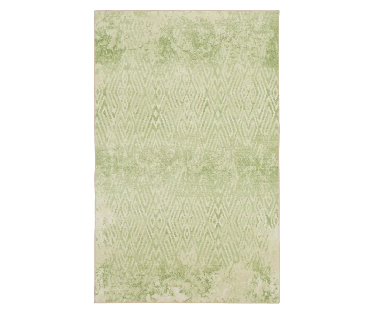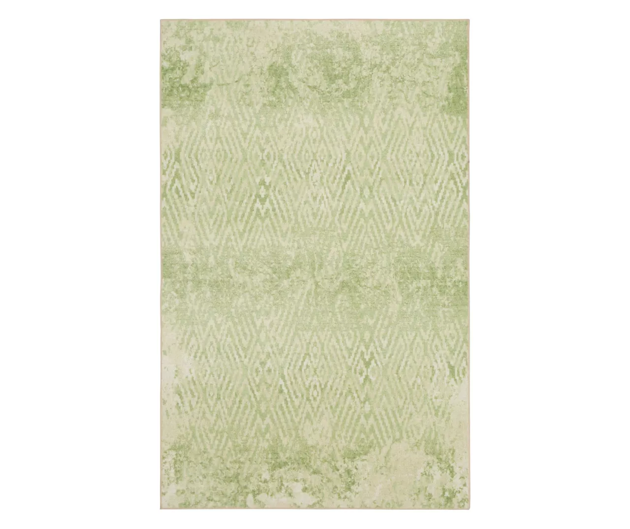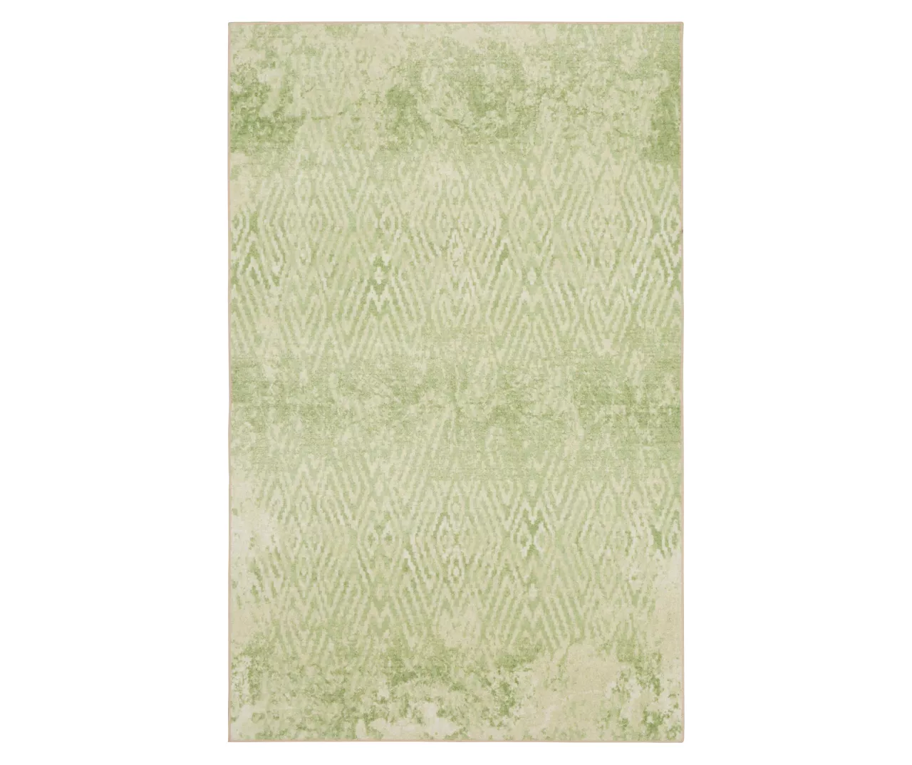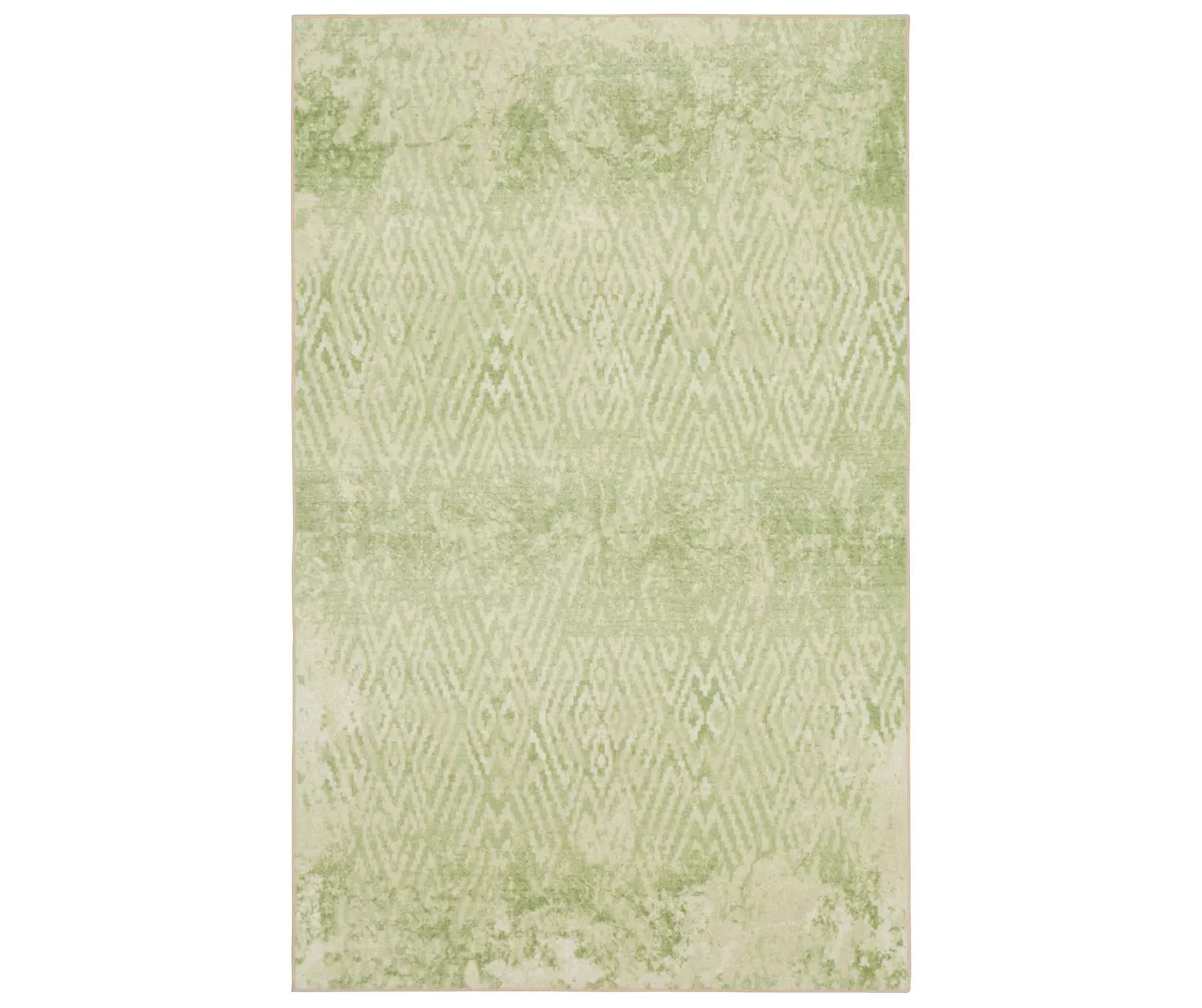 - A distressed geometric pattern in bright shades of green and white for a vintage boho look