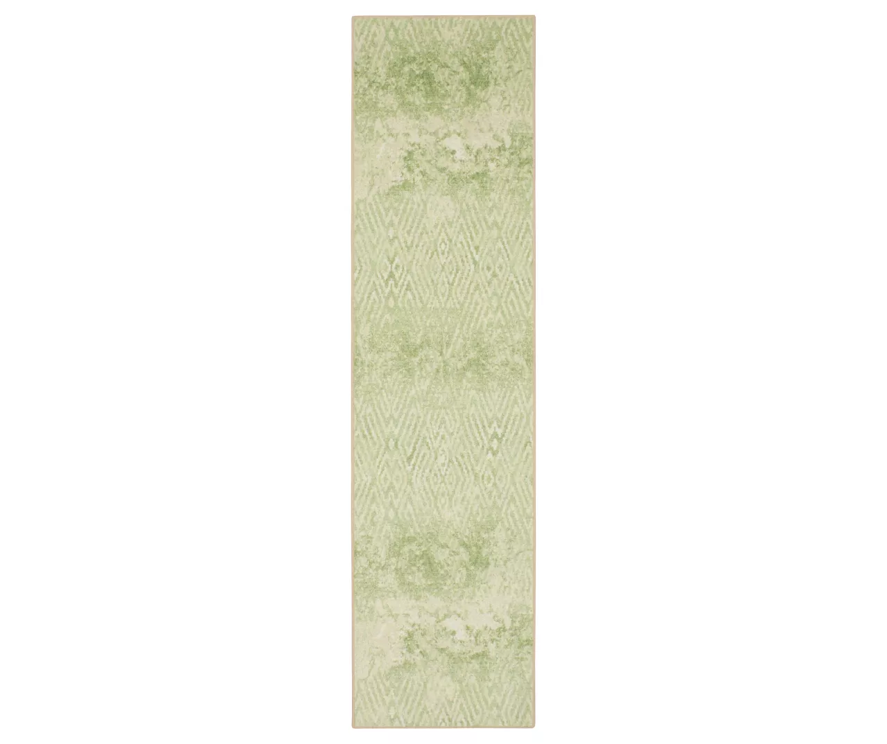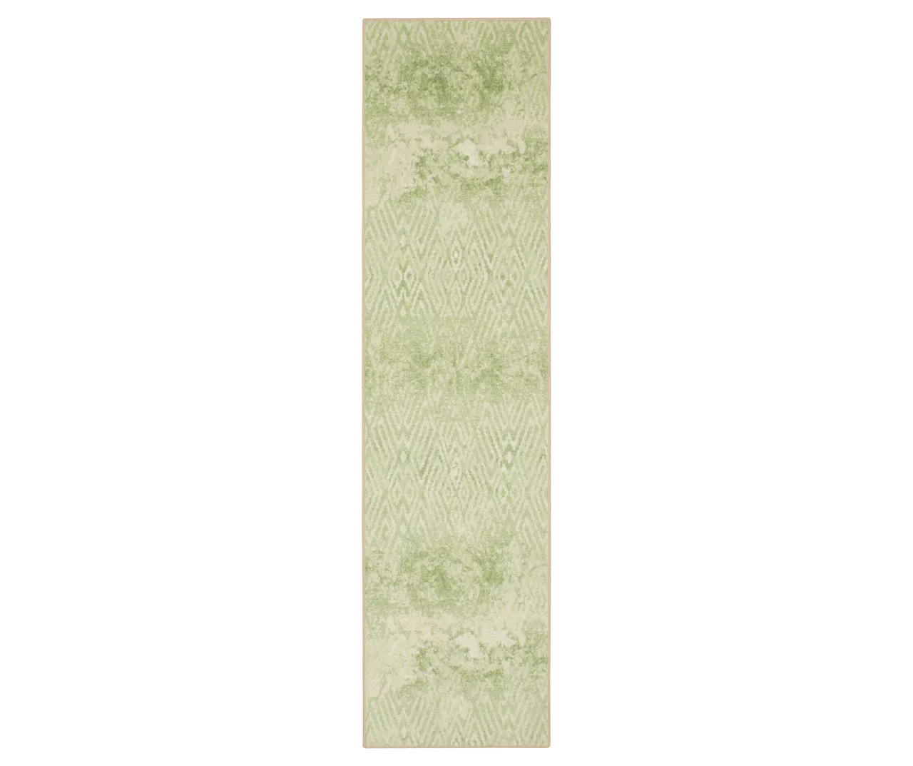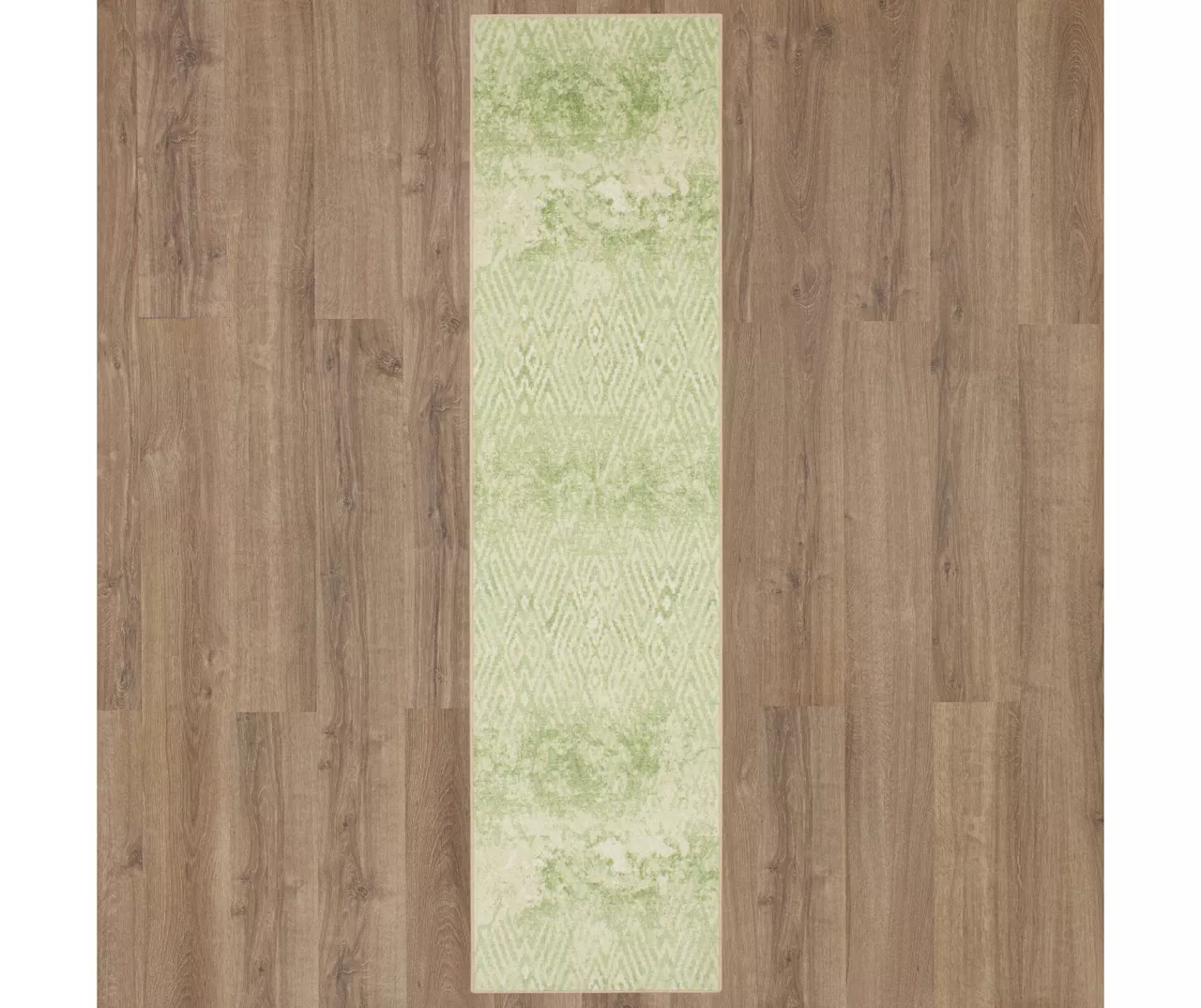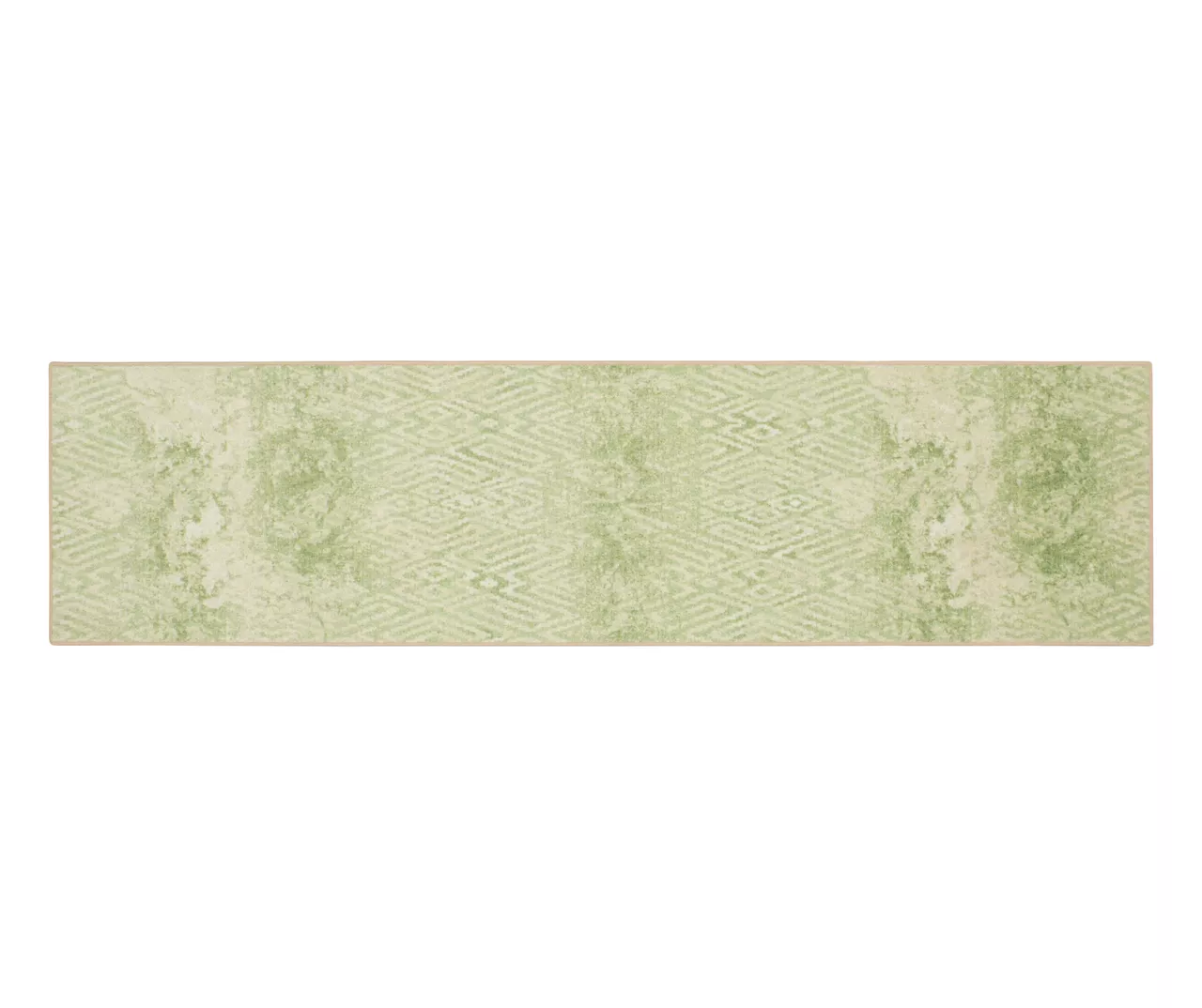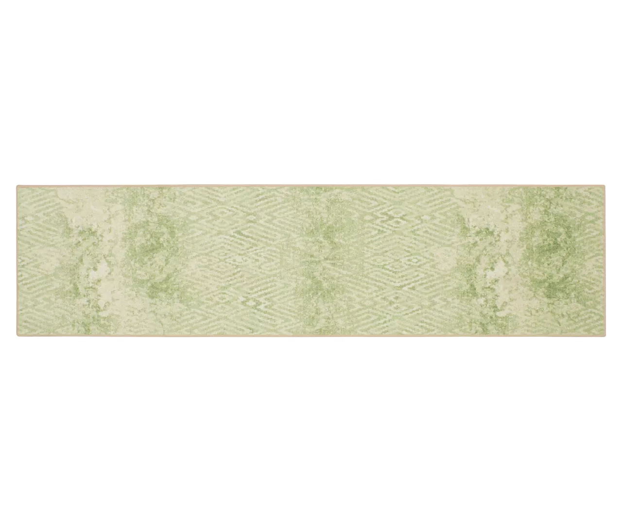 - A distressed geometric pattern in bright shades of green and white for a vintage boho look
