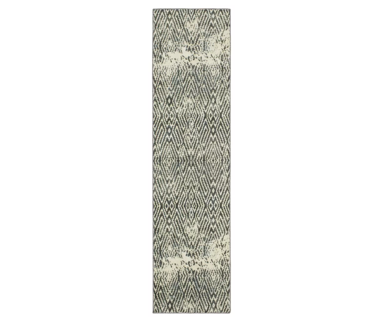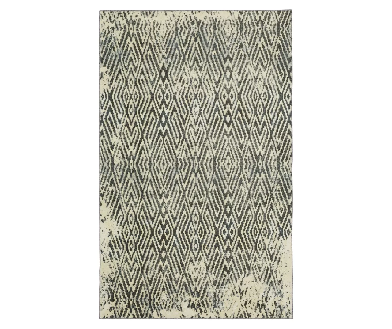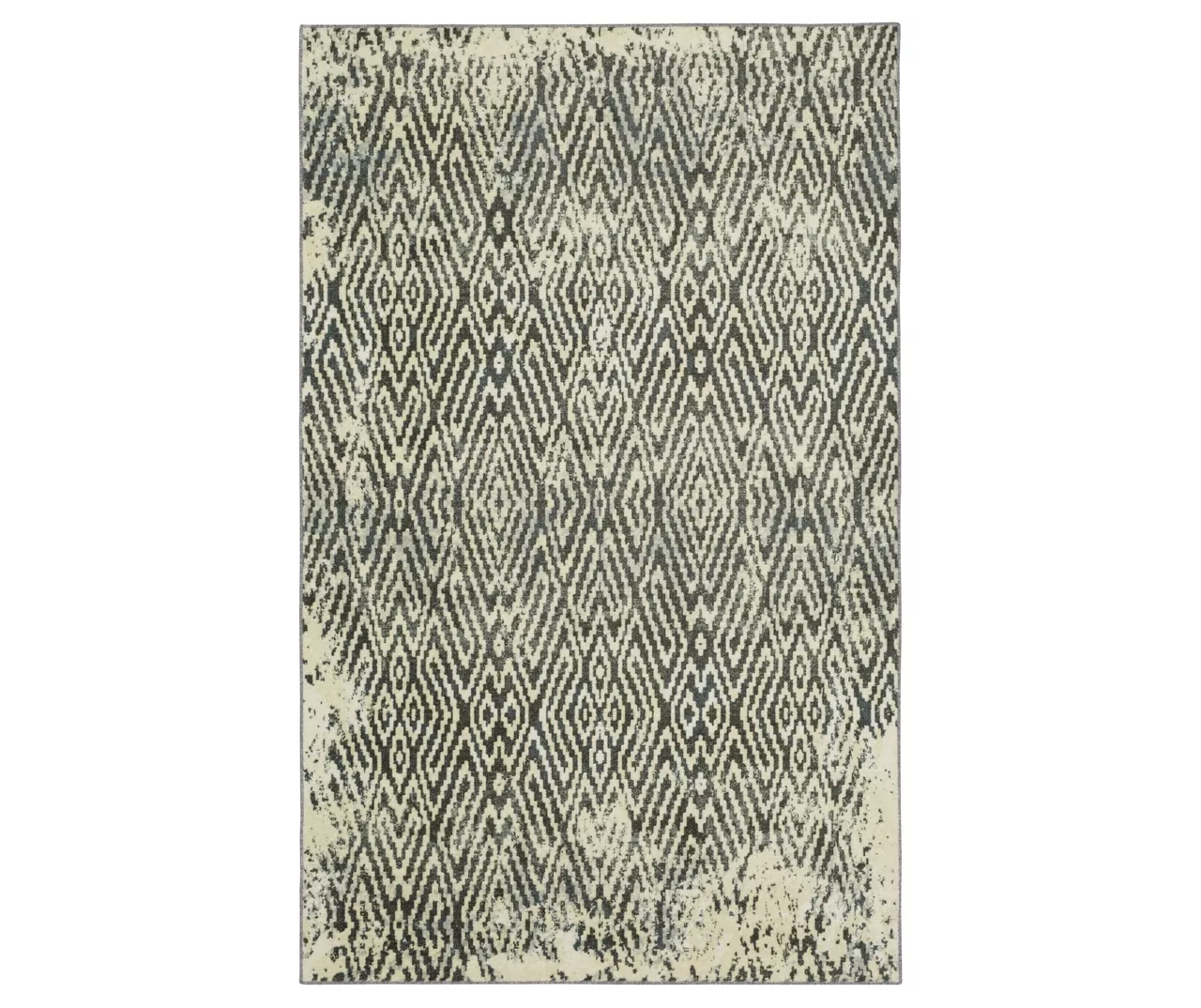 - Distressed geometric pattern in shades of gray and white for a modern boho look