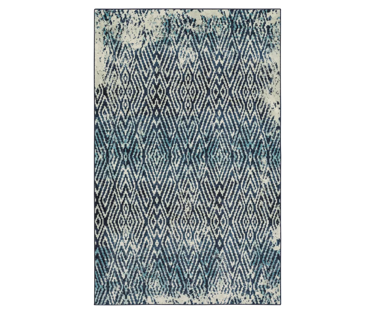 - Distressed geometric pattern in shades of navy and white for a modern boho look