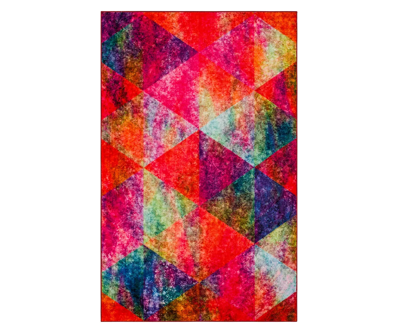 Like gazing through the lenses of a kaleidoscope, psychedelic bursts of hot magenta pink, violet purple, fiery red, golden yellow, cloud white and lime green color meld together in the modern triangle motif of Mohawk’s contemporary Remick area rug. Thoughtfully crafted in the U.S.A. utilizing Mohawk Home’s exclusive precision dye-injected printer, this rug is designed on a plush EverStrand™ tufted base made from premium recycled polyester. A non-skid latex backing helps to keep things in place, and the low pile is durably designed to easily work with doorways or furniture while withstanding everyday use.