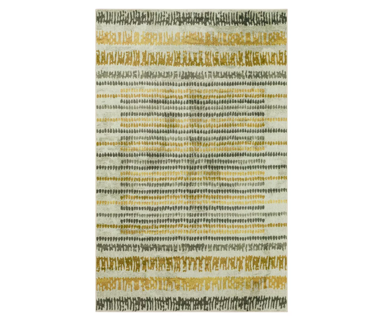 Abstract, painterly inspired stripes of faded charcoal, mustard yellow, matte gold, silver and gray pop over the cream-colored base of Mohawk Home’s contemporary Tana area rug. Thoughtfully crafted in the U.S.A. utilizing Mohawk Home’s exclusive precision dye-injected printer, this rug is designed on a plush EverStrand™ tufted base made from premium recycled polyester. A non-skid latex backing helps to keep things in place, and the low pile is durably designed to easily work with doorways or furniture while withstanding everyday use.