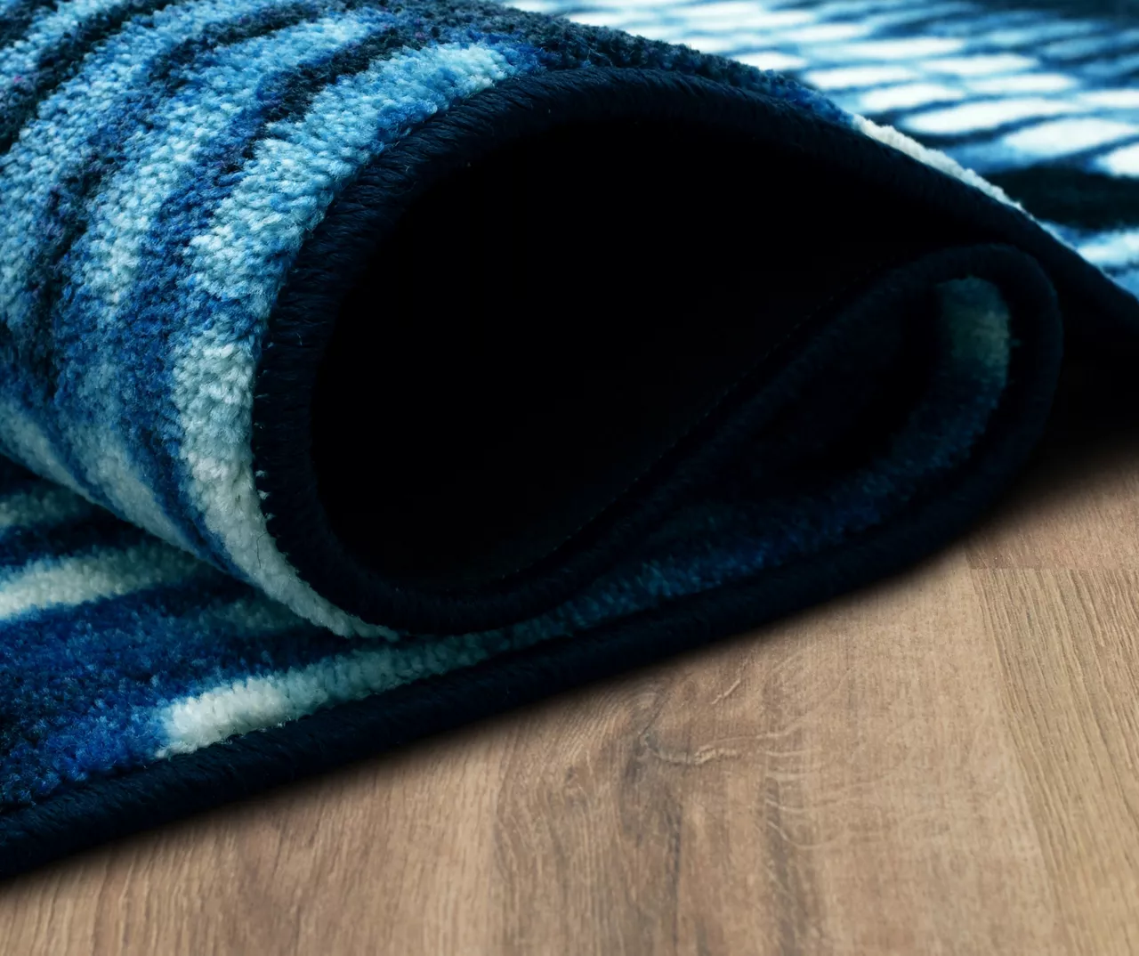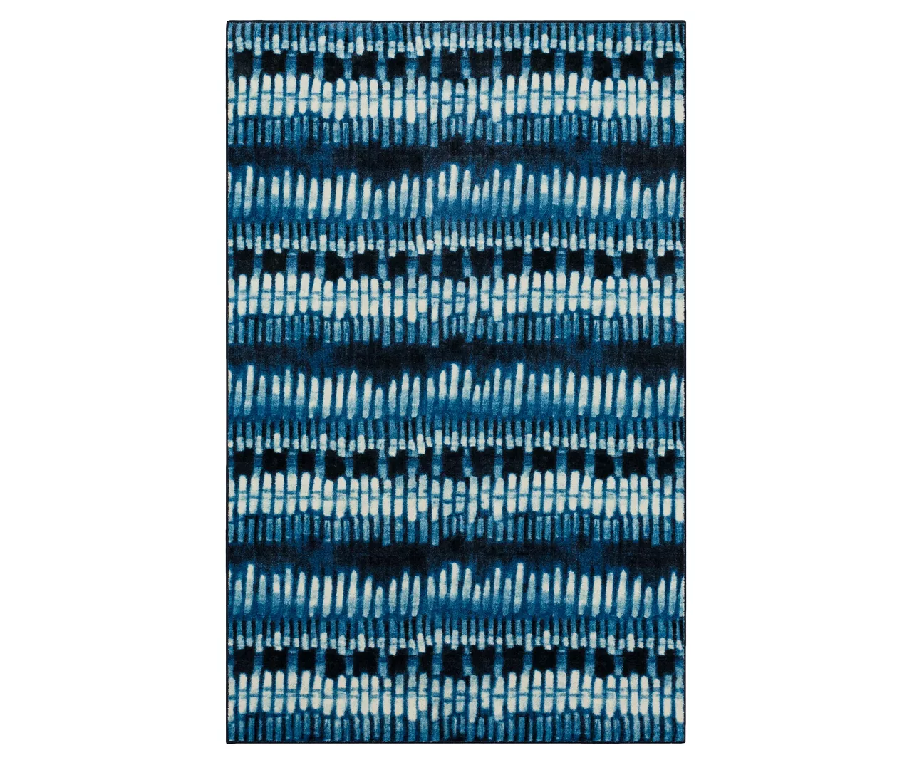 Textured geometric stripes featuring rows of dashed lines cast in a cool palette of indigo, midnight, pale powder blue and bright white add modern contemporary style to any space with Mohawk Home’s Imprint area rug. Thoughtfully crafted in the U.S.A. utilizing Mohawk Home’s exclusive precision dye-injected printer, this rug is designed on a plush EverStrand™ tufted base made from premium recycled polyester. A non-skid latex backing helps to keep things in place, and the low pile is durably designed to easily work with doorways or furniture while withstanding everyday use.