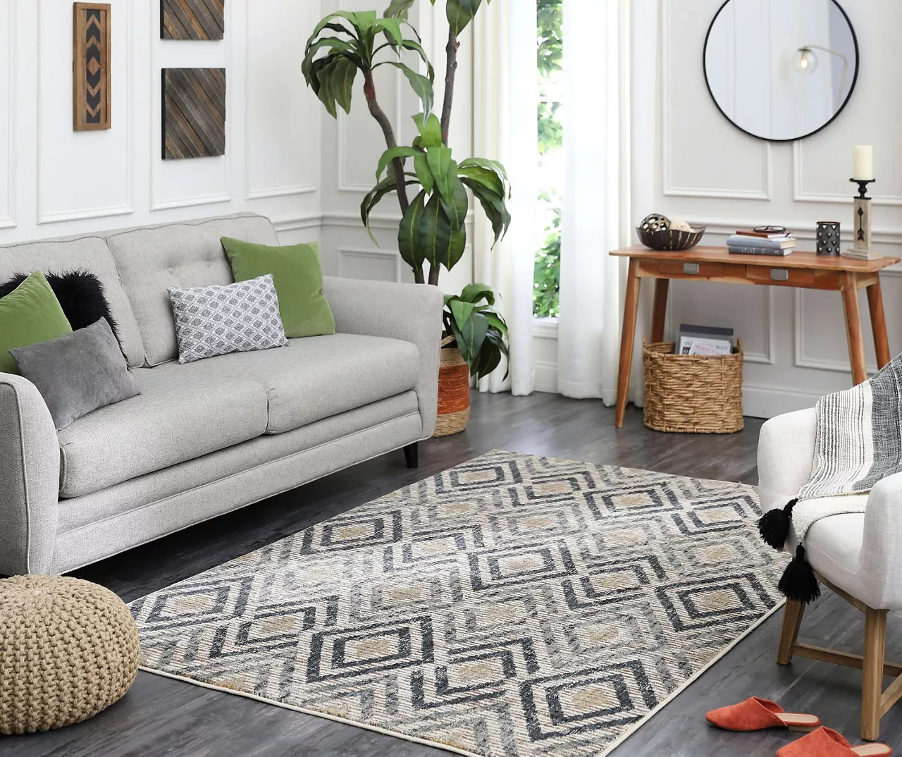 - Geometric design in a neutral palette for a modern boho look