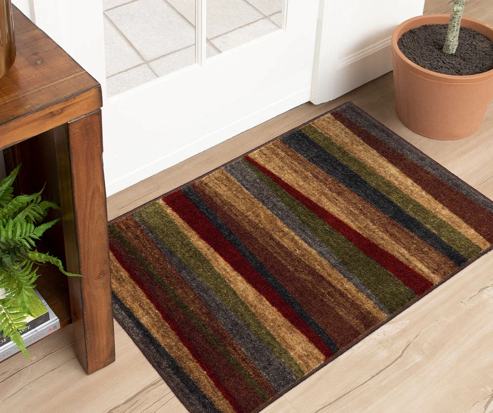 Enjoy a twist on classic stripes thanks to a mix of high-contrast colors in alternating triangular silhouettes. Combining a unique pattern and soft comfort underfoot, this rug offers a perfect finishing touch in any living or work space.