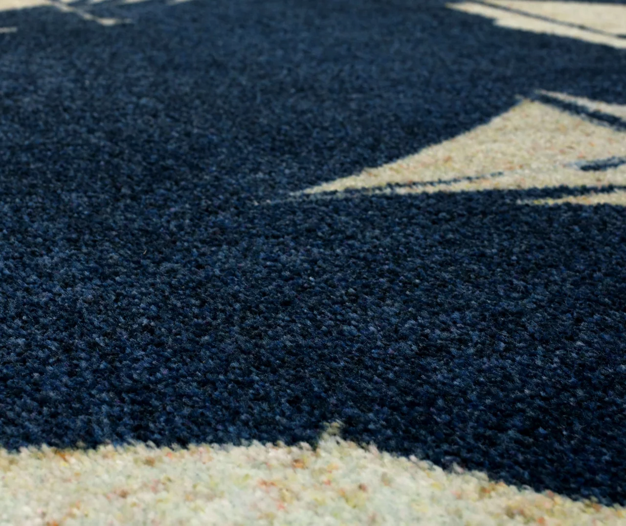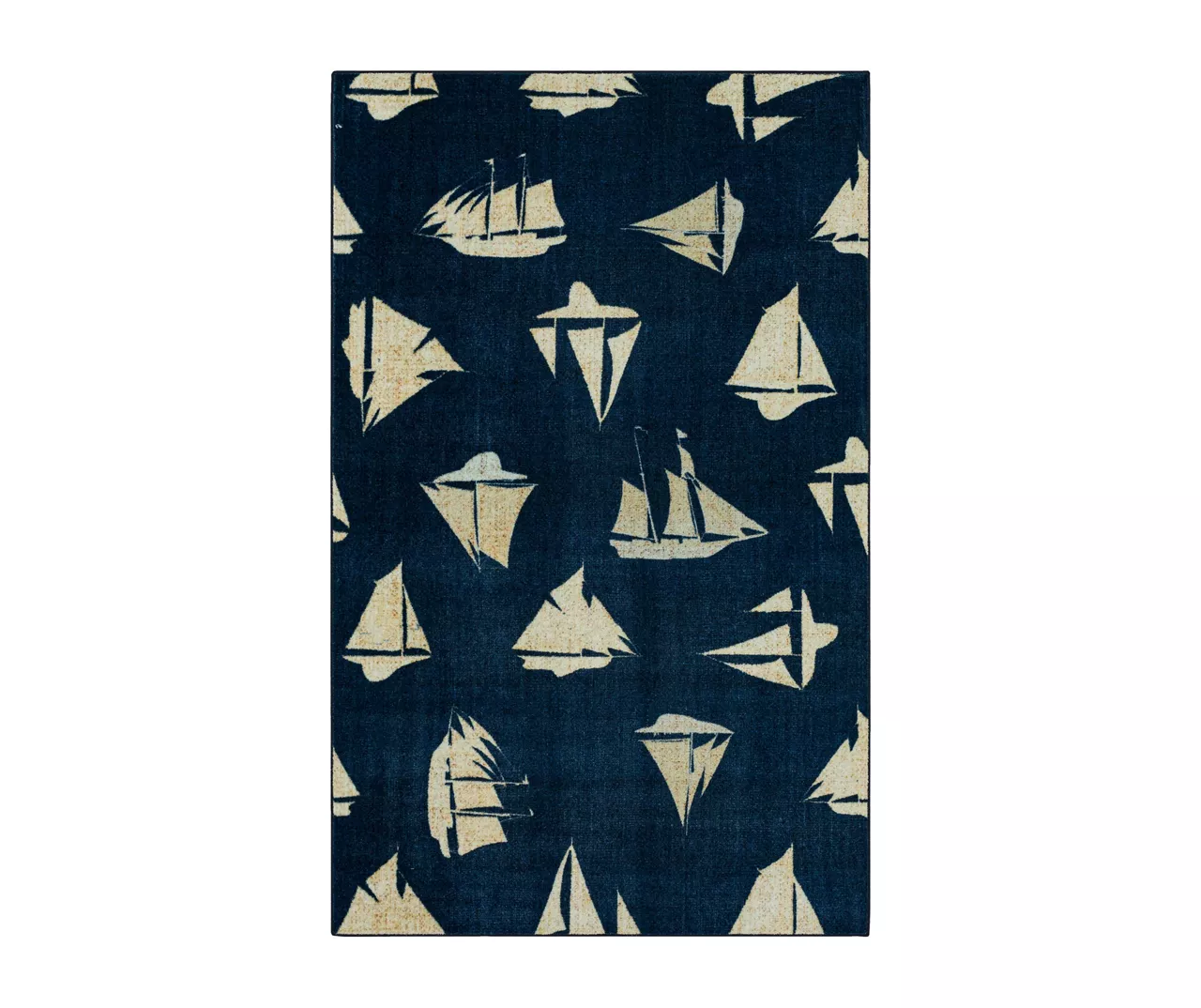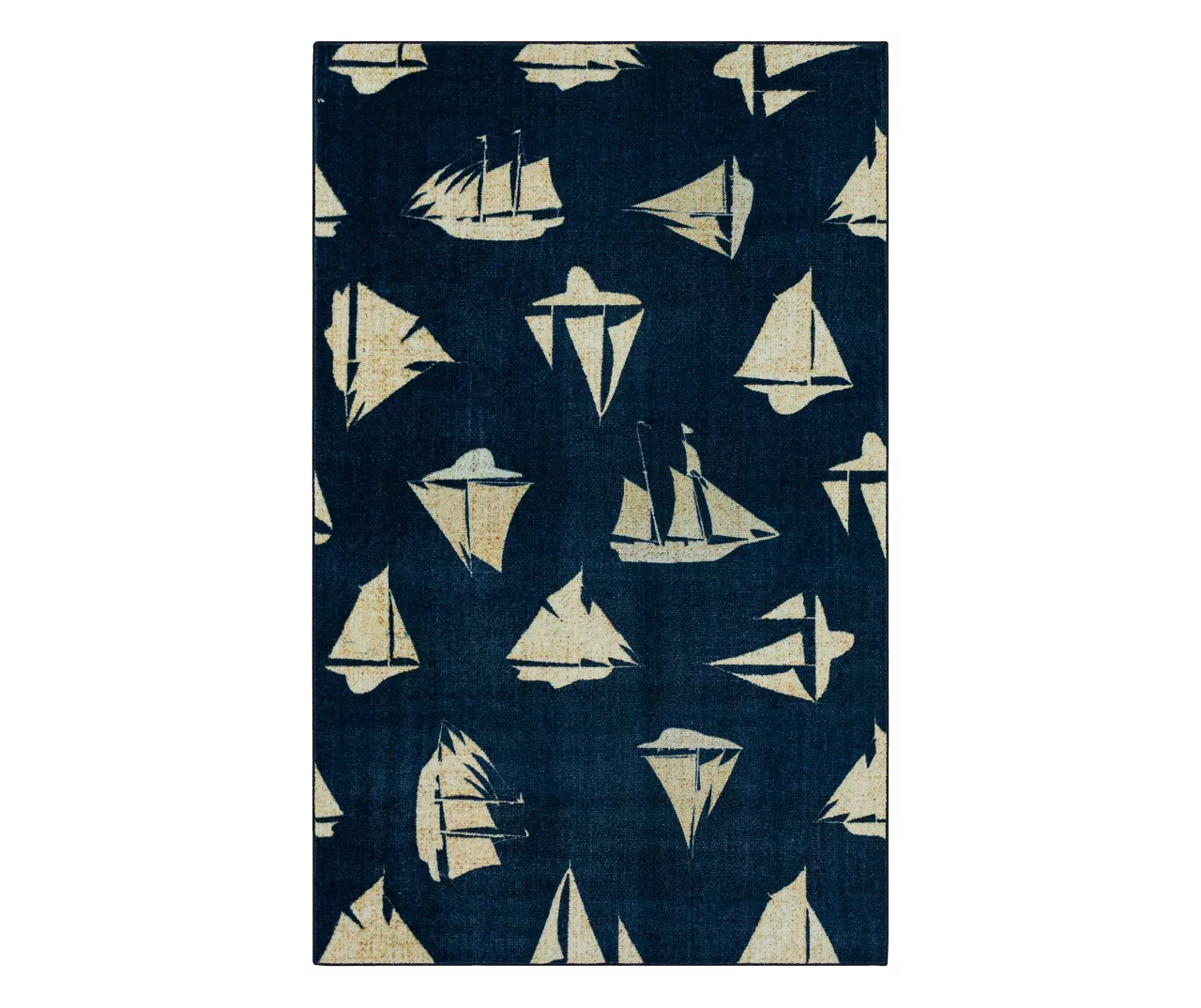 A deep navy background is adorned with simple off-white sailboats, lending a touch of nautical appeal that’s perfect for a living room, office or other living space. Re-energize your space with radiant color and original artwork digitally printed over a plush canvas of Mohawk Home’s exclusive ecofriendly EverStrand™, a premium synthetic yarn created from post-consumer recycled plastic bottles. While EverStrand™ is renowned for its softness, this silky yarn also offers superior strength, stain resistance, illustrious fade-resistant color clarity and dependable durability ideal for high-traffic spaces with kids and pets.