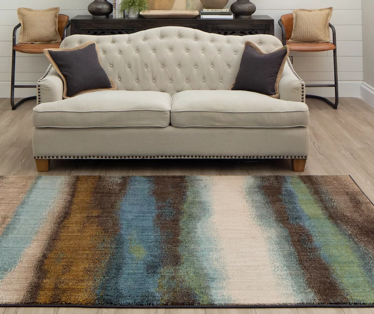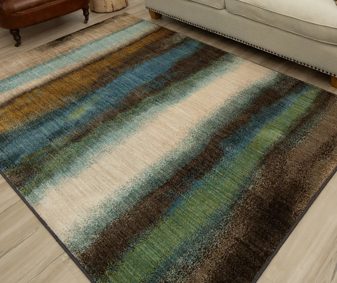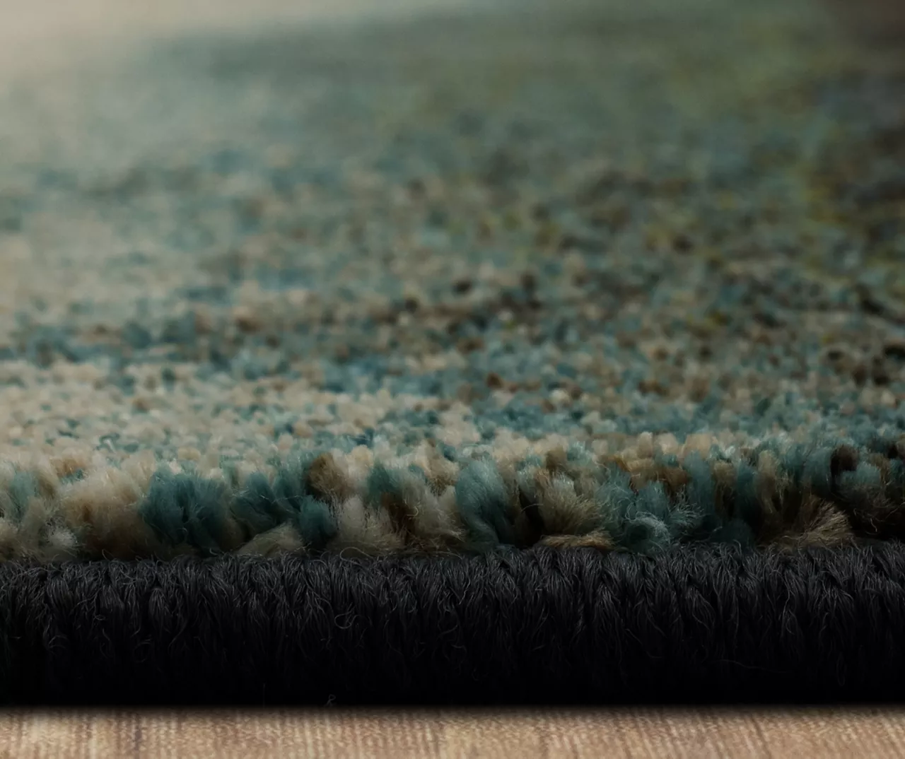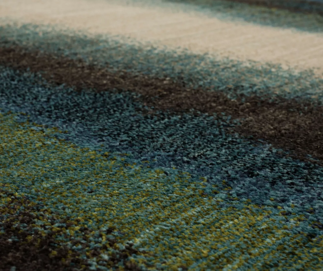 Like a hazy vision from a deep dream, the abstract washes of color featured in the Odin area rug from Mohawk can be interpreted differently. Painterly strokes of gunmetal gray, lagoon, oyster, onyx black, admiral blue, celery green feature accents of golden mustard in the contemporary style canvas. Designed with Mohawk’s exclusive EverStrand™ recycled polyester yarn, the styles of the Muse Collection offer a sumptuous softness, superior stain resistance and dependable durability.