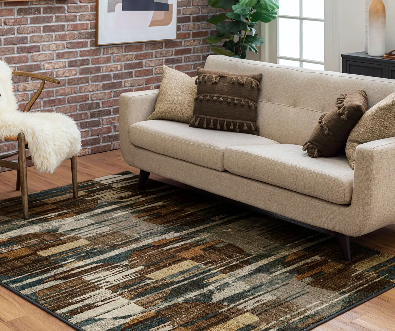 Live in luxurious style with the Mohawk Pyramid Lake area rug featuring an abstract pattern in a modern gray, brown and navy color palette. Thoughtfully designed with Mohawk’s machine-woven construction, this rug is crafted with stain-resistant polyester yarn and durably secured with hard latex backing.