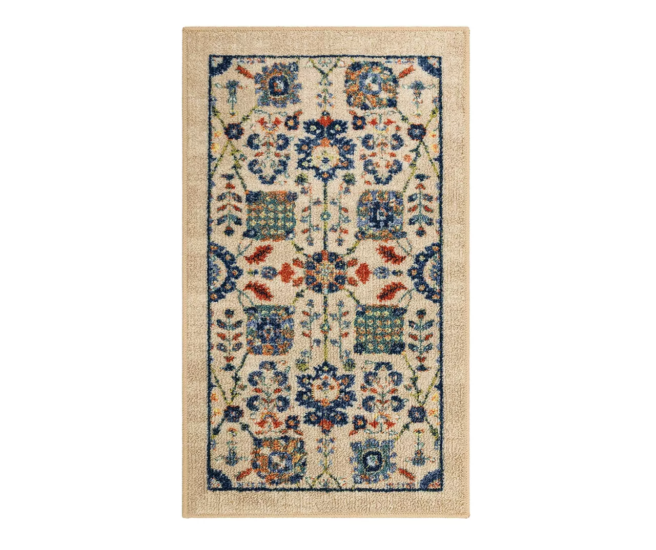 The Mohawk Home Queensbury area rug features an ornamental floral motif in a versatile color palette that is sure to perfectly accent any room. The low pile is created with Mohawk’s premium wear-dated nylon fiber for a soft touch and dependable durability. This rug is sure to make an elegant addition to a bedroom or other living space and the non-skid latex backing helps to keep things in place.