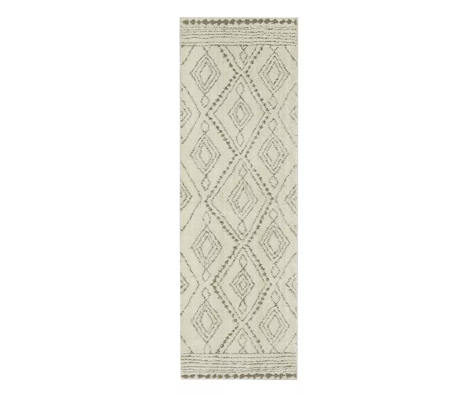An oversized diamond pattern in muted brown makes an understated contrast against neutral tan on this Nom Vado rug. It’s a perfect addition in any living or work space to add chic style and soft comfort underfoot.