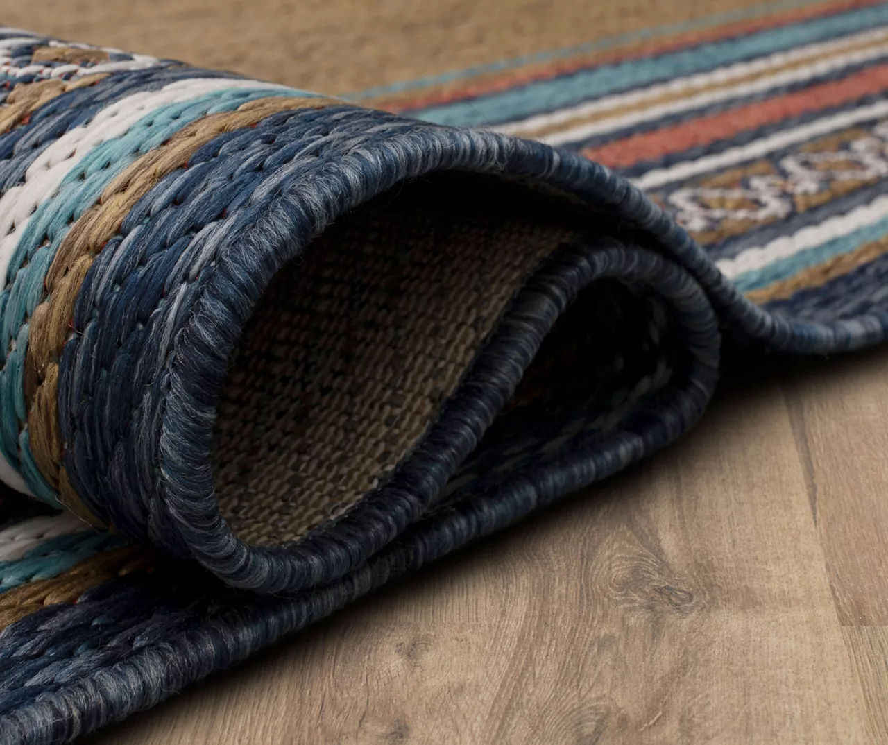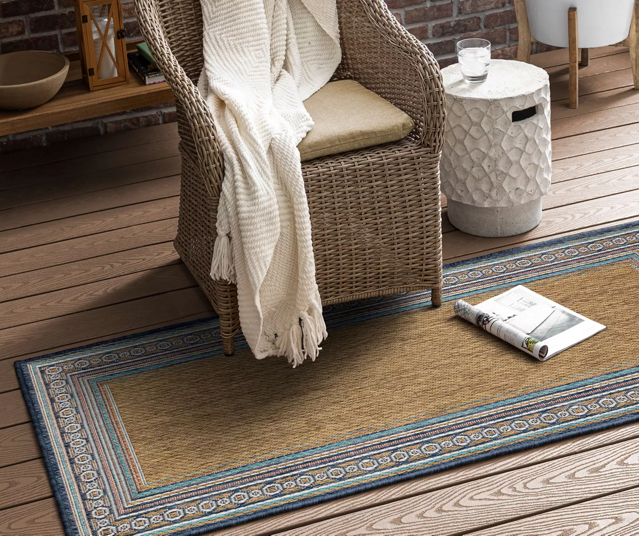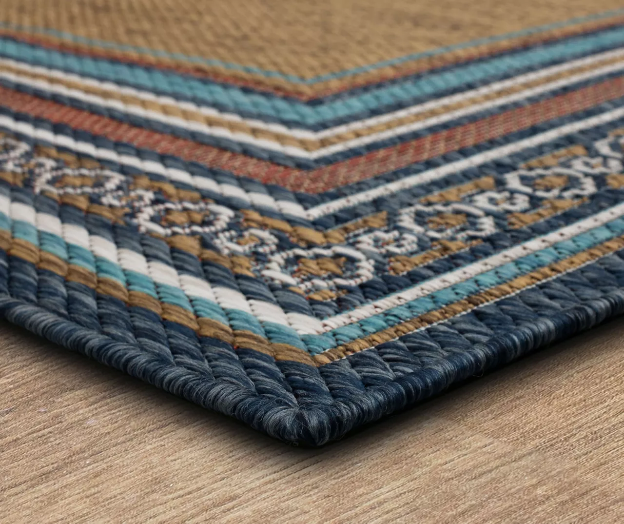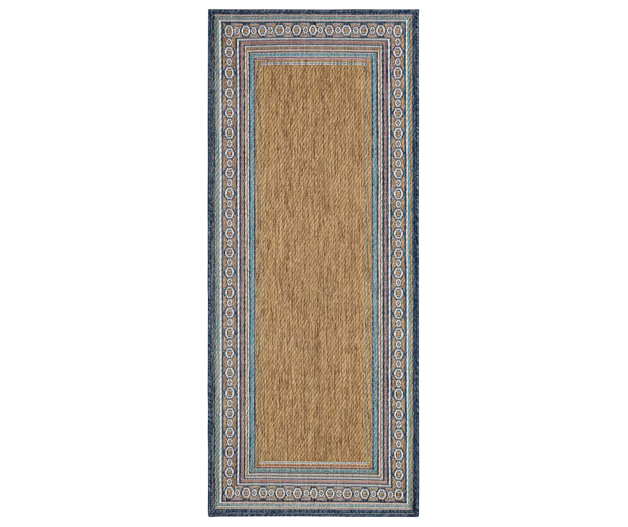 The Mohawk Home Panama area rug features a geometric border design in a palette of blue, white and brown that easily complements your decor. Made with all-weather olefin polypropylene yarn, this flatwoven area rug offers a detailed design, soft feel and dependable durability that works in both indoor and outdoor spaces. The resilient surface fiber offers moisture, stain and fade resistance, making it a great choice for high-traffic areas.