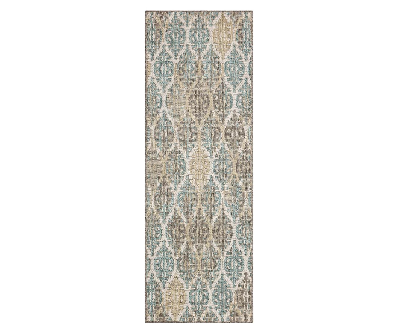 The Mohawk Home Paradise Grove area rug features a scrolling arabesque design in a lovely gray and turquoise palette. Made with all-weather olefin polypropylene yarn, this flatwoven area rug offers a detailed design, soft feel and dependable durability that works in both indoor and outdoor spaces. The resilient surface fibers are resistant to stains, fading and moisture, making it a great choice for high-traffic areas.