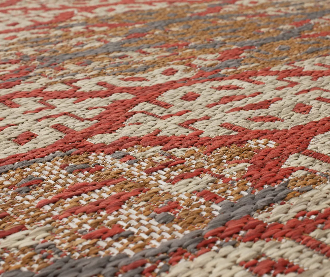 The Mohawk Home Paradise Grove area rug features a scrolling arabesque design in a warm rust and gray palette. Made with all-weather olefin polypropylene yarn, this flatwoven area rug offers a detailed design, soft feel and dependable durability that works in both indoor and outdoor spaces. The resilient surface fibers are resistant to stains, fading and moisture, making it a great choice for high-traffic areas.