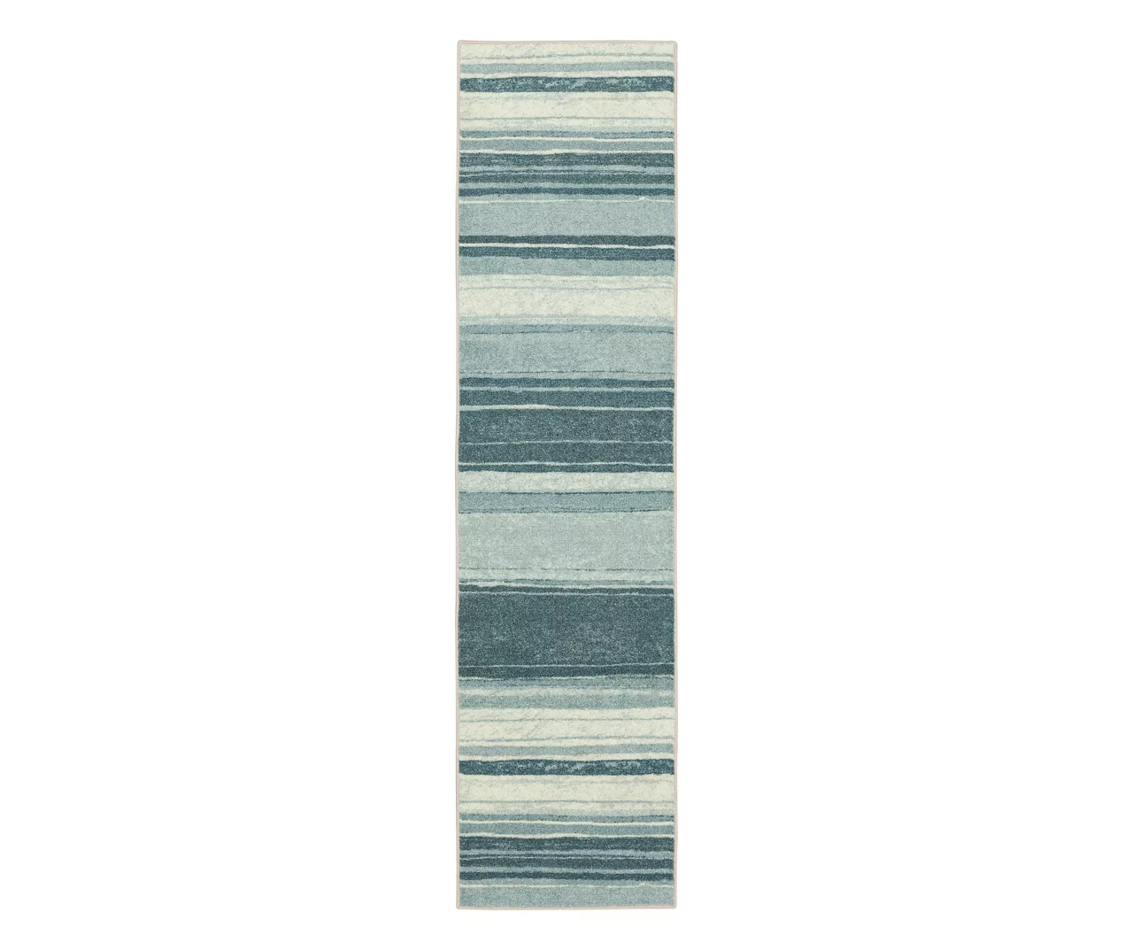 Bold saturated stripes in versatile blue shades adorn the Mohawk Home Rainbow runner rug. Showcasing modern brushstroke lines, the azure palette featured on the pattern of this contemporary area rug effortlessly complements your space to create a look that is truly all your own. This rug features bold color clarity and richly defined details with the dependable durability needed for busy households. The dense pile is created with a premium recycled polyester yarn that provides proven stain resistance, while the latex backing helps to secure this rug in place.