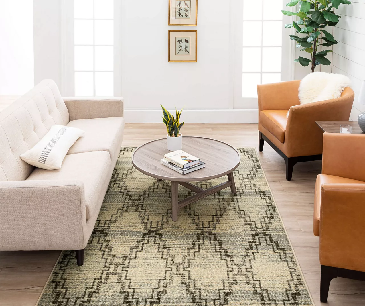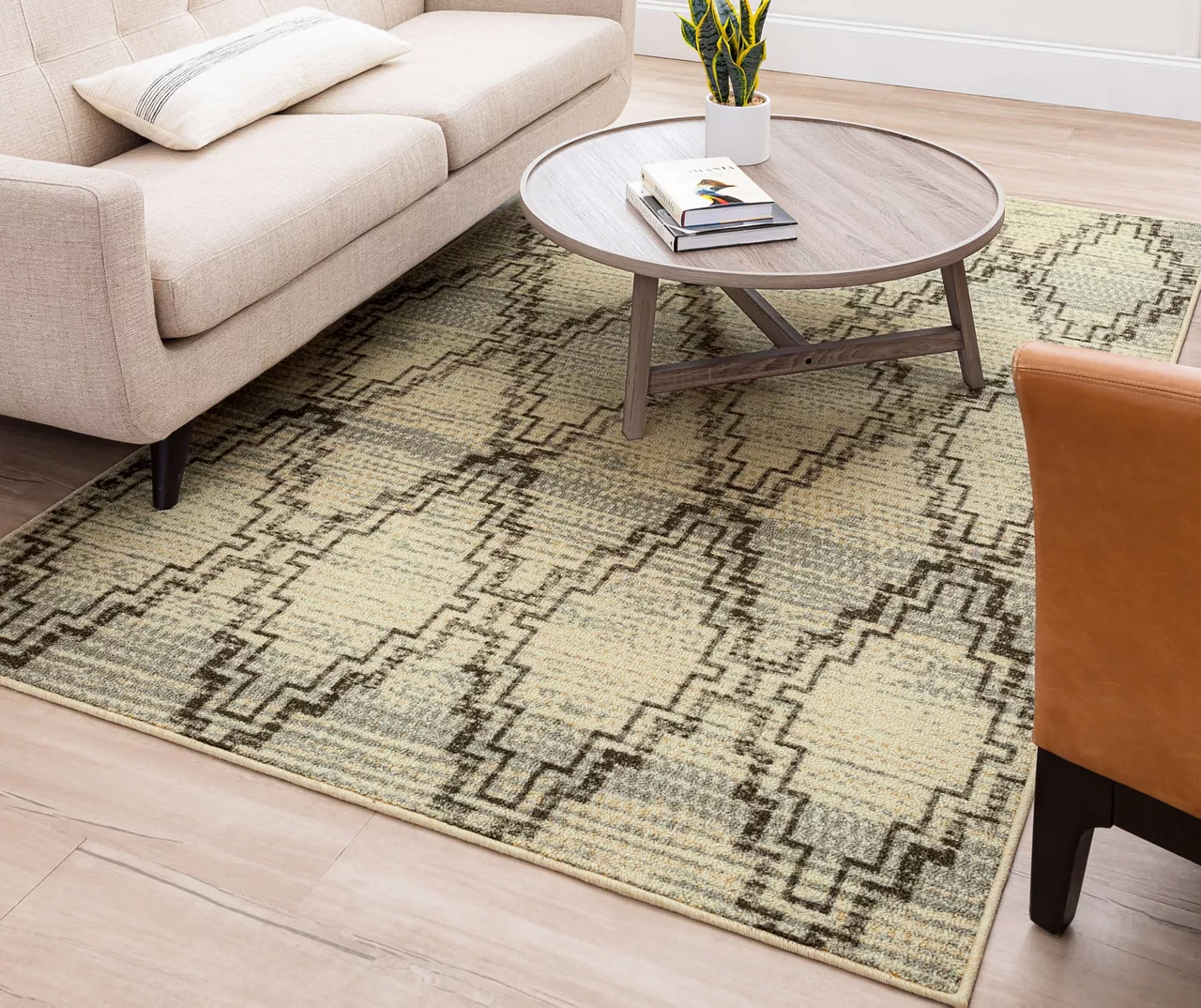 The Mohawk Home Ronson area rug features a geometric design motif in a neutral color palette that is sure to perfectly accent any room. The low pile is created with Mohawk’s premium wear-dated nylon fiber for a soft touch and dependable durability. This rug is sure to make an elegant addition to a bedroom or other living space and the non-skid latex backing helps to keep things in place.